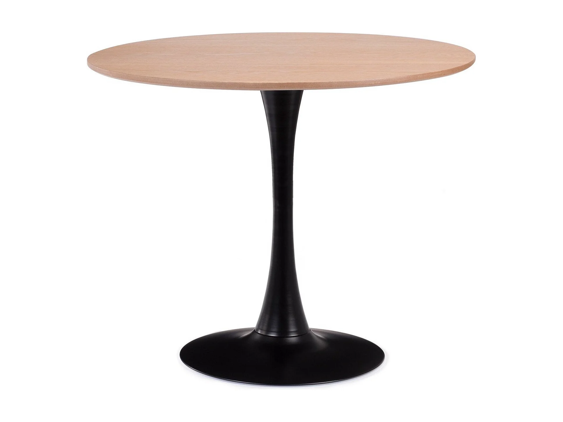 Table ronde moderne bois naturel et pied métal noir Tulipa 80cm