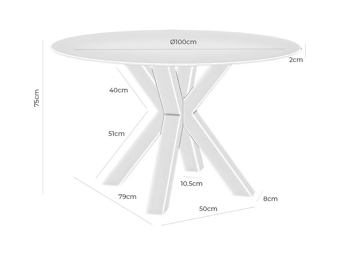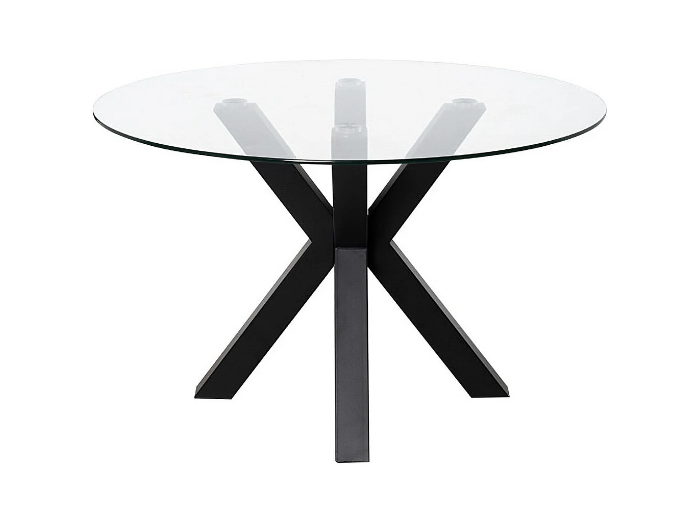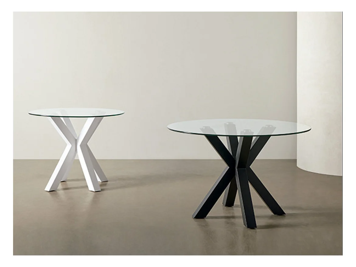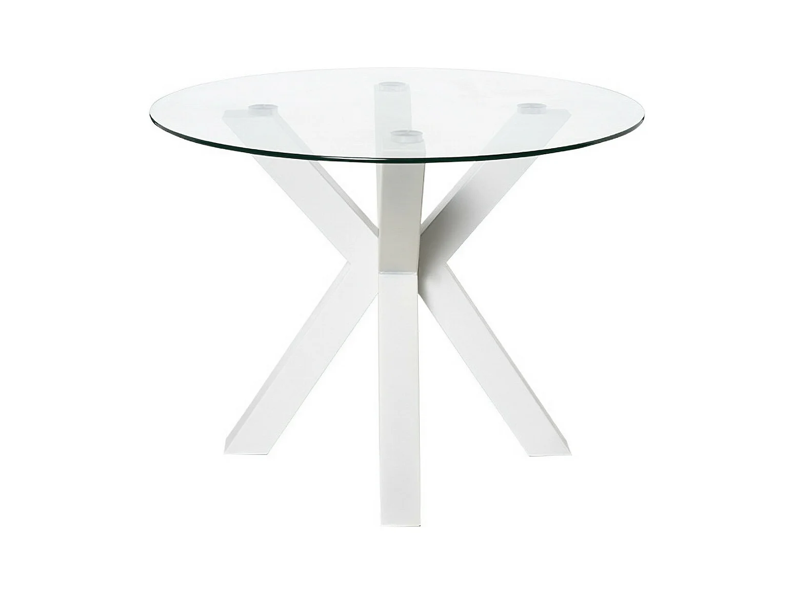 Table ronde moderne Jadys – Plateau en verre et pieds croisés en métal-Couleur Blanc-Diamètre 100 cm