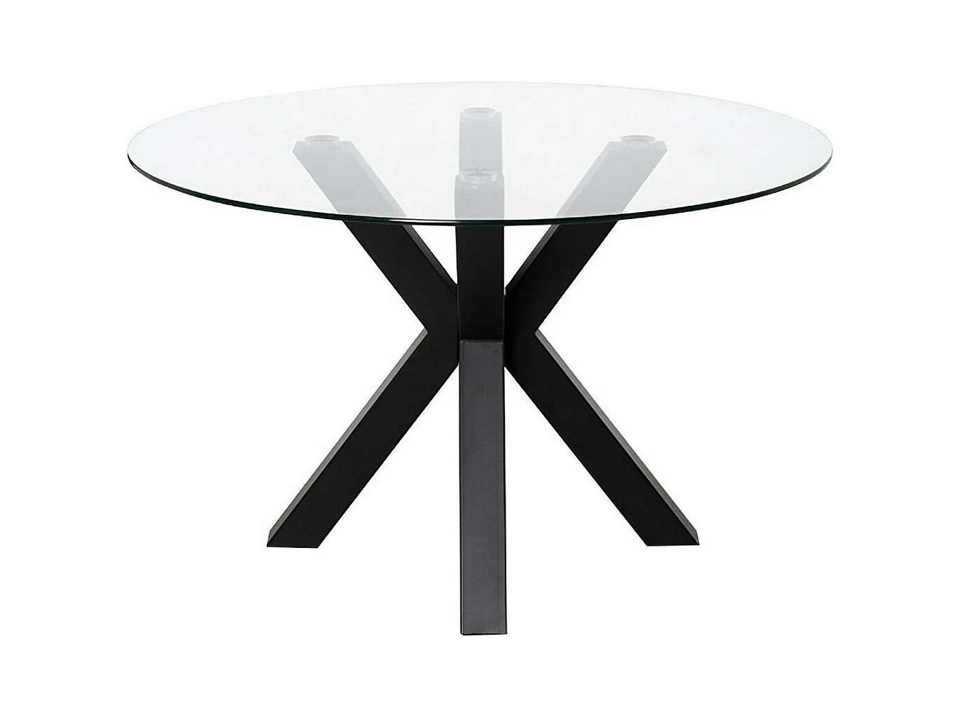 Table ronde moderne Jadys – Plateau en verre et pieds croisés en métal-Couleur Noir-Diamètre 100 cm
