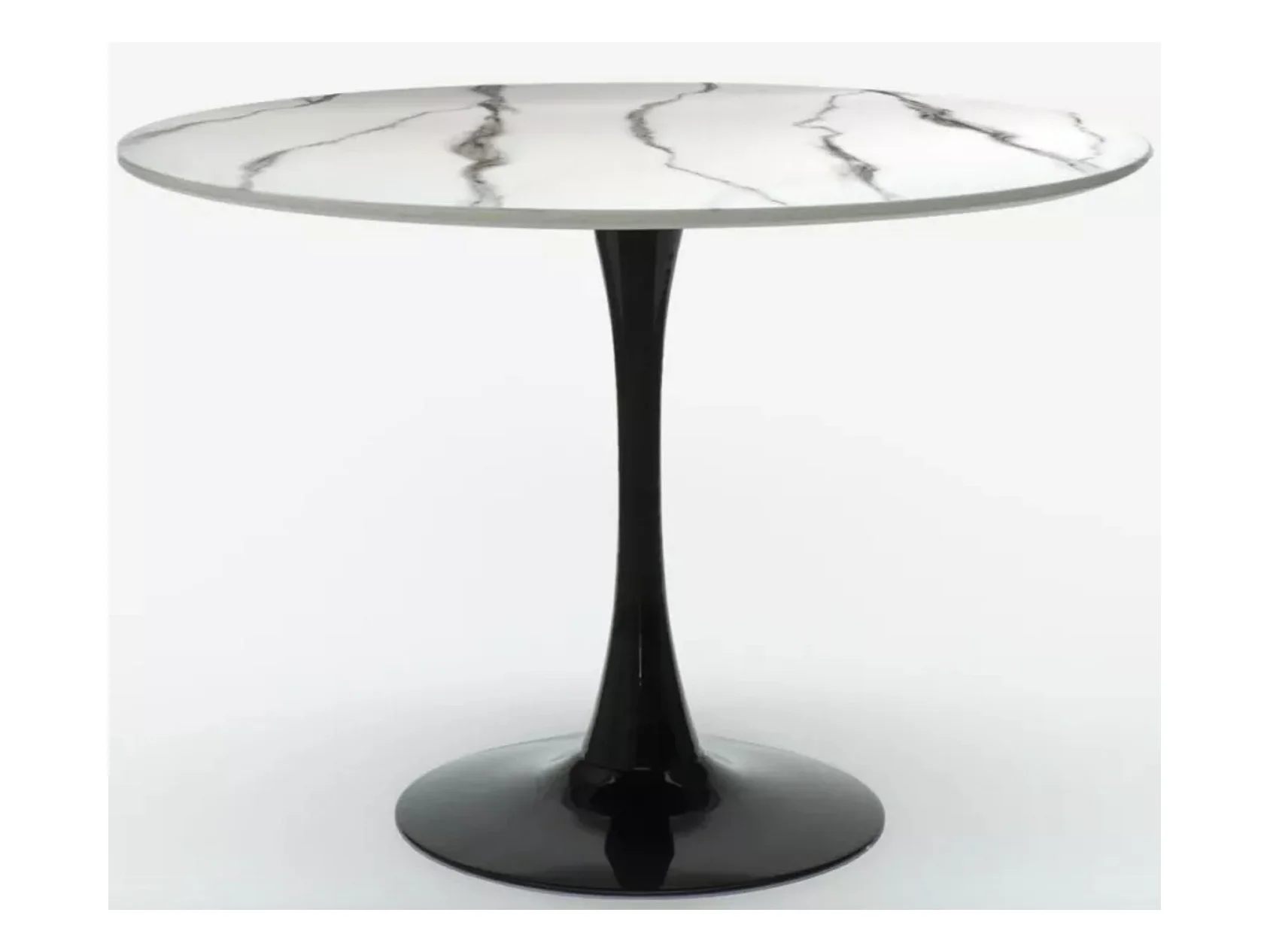Table ronde moderne noir et effet marbre blanc Tulipa 80cm