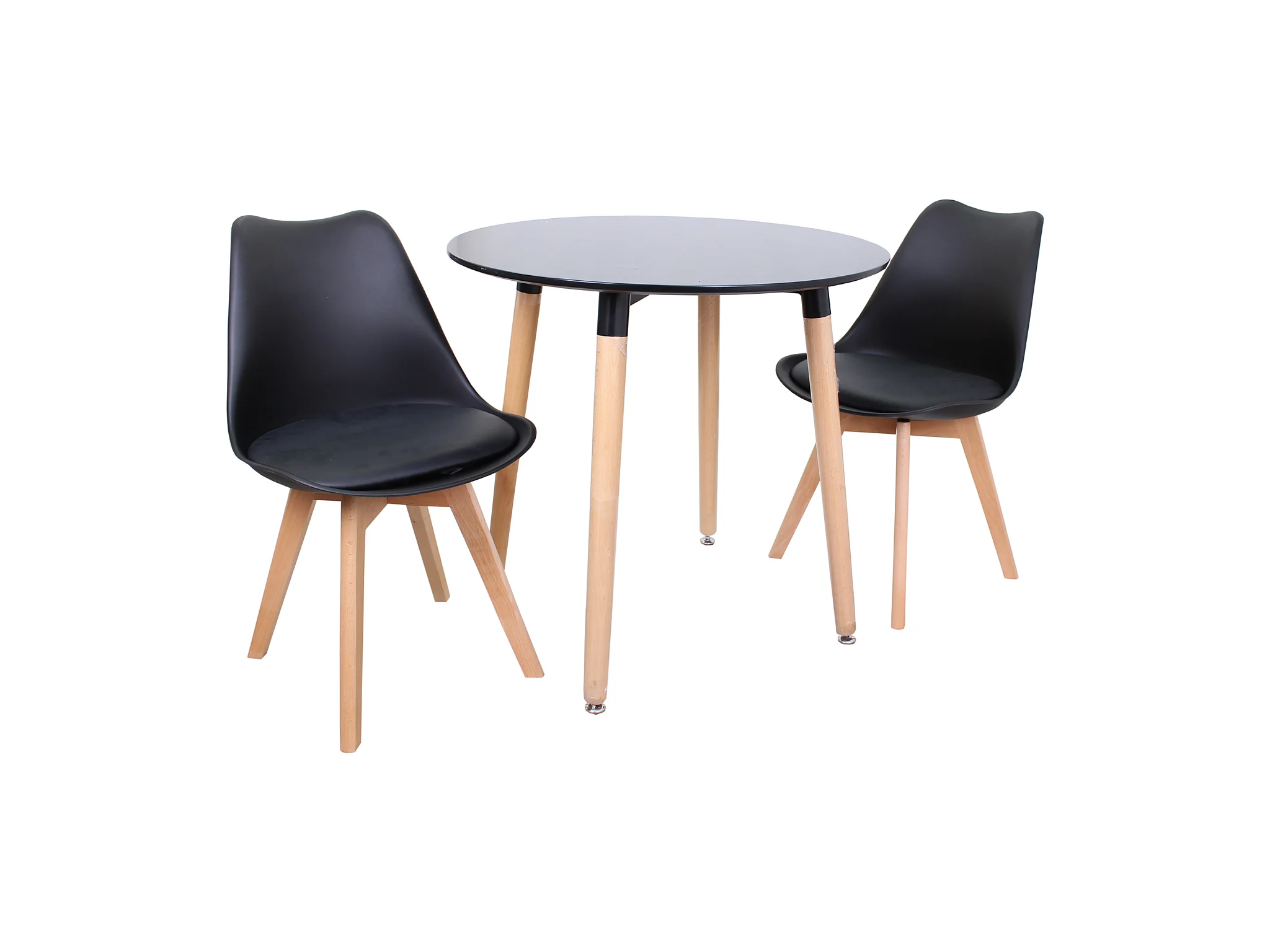 LORENZO HALO - Ensemble Salle à Manger - Table Ronde Noire + 2 Chaises Scandinaves Noires