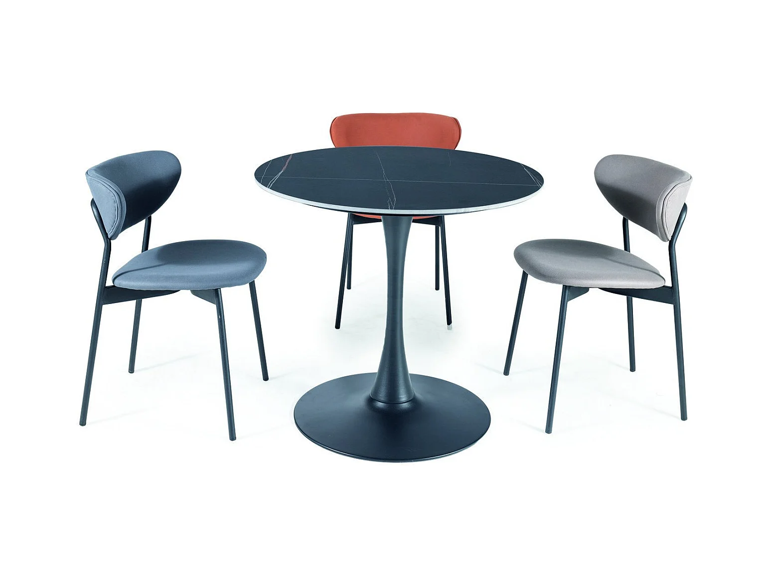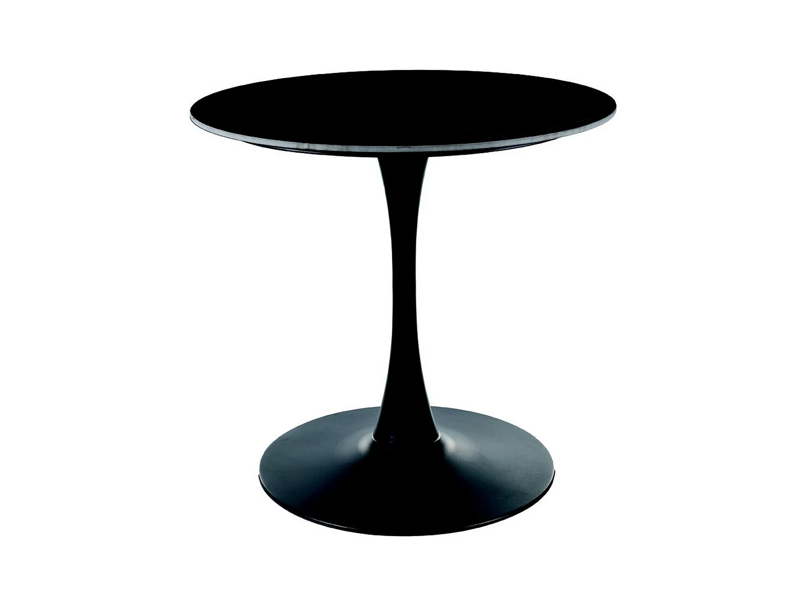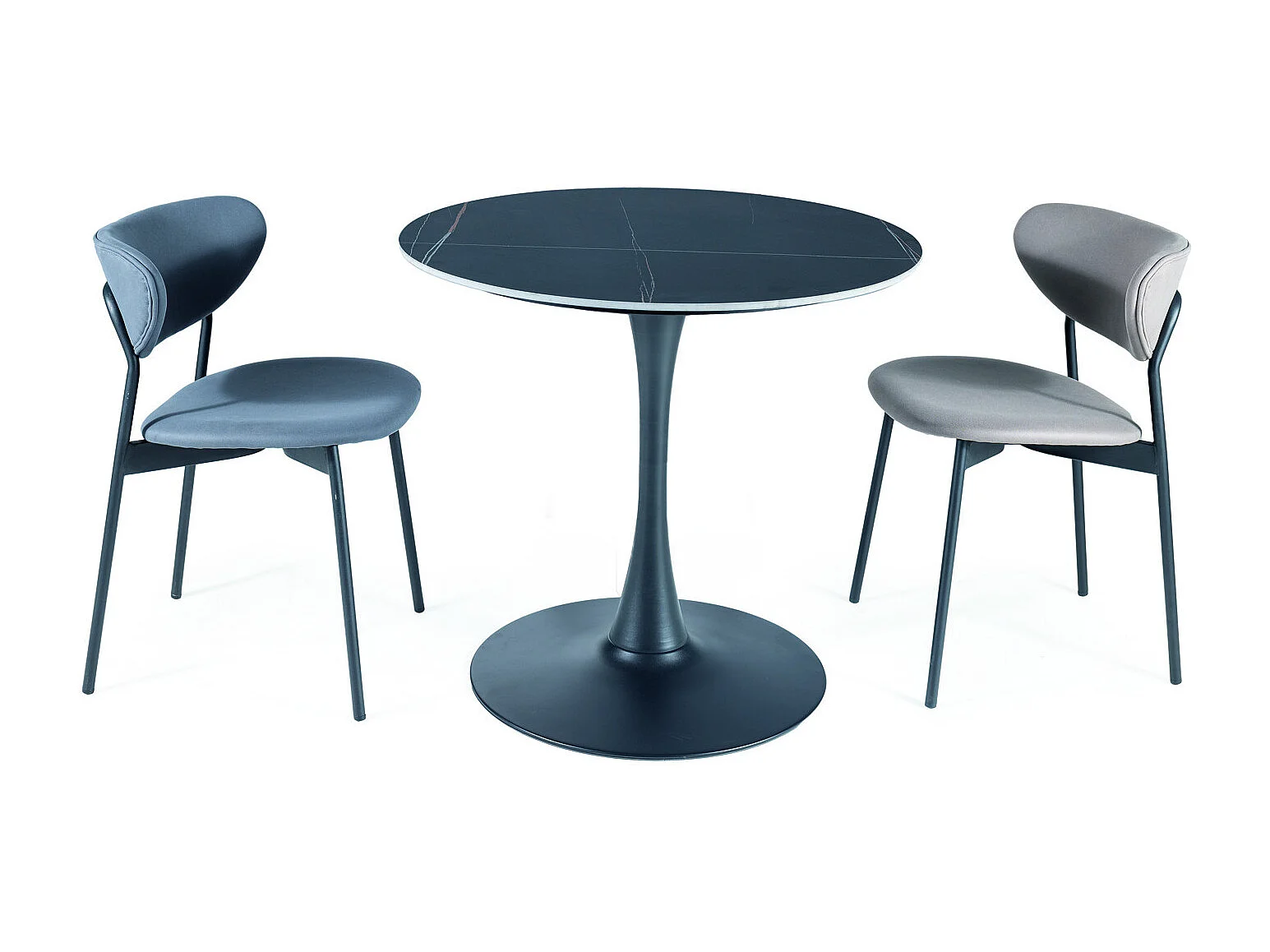 Table ronde noire 80cm avec plateau céramique aspect marbre Sasha