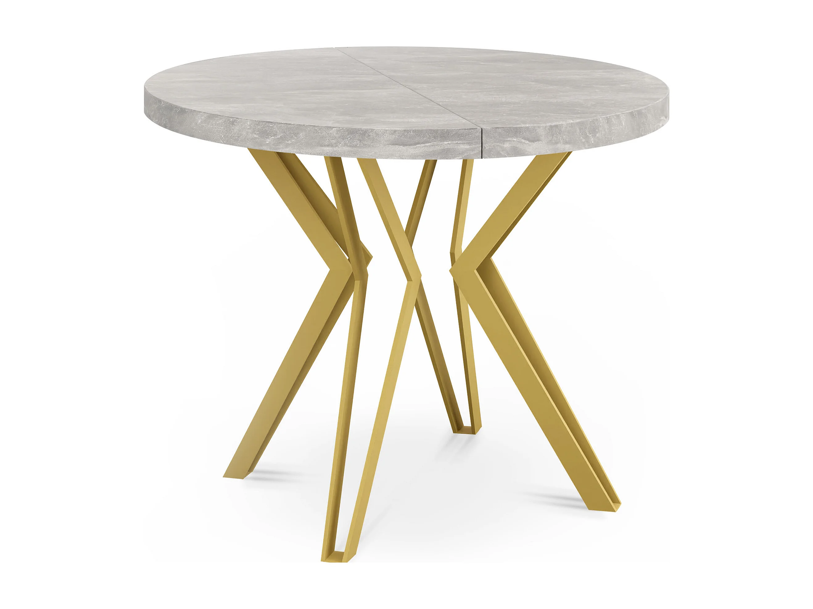 Table Ronde Salle à Manger - 120/196 cm de Diamètre - Table à Rallonges Avec Pieds en Métal Doré - Style Industriel - Compacte - Gris Béton