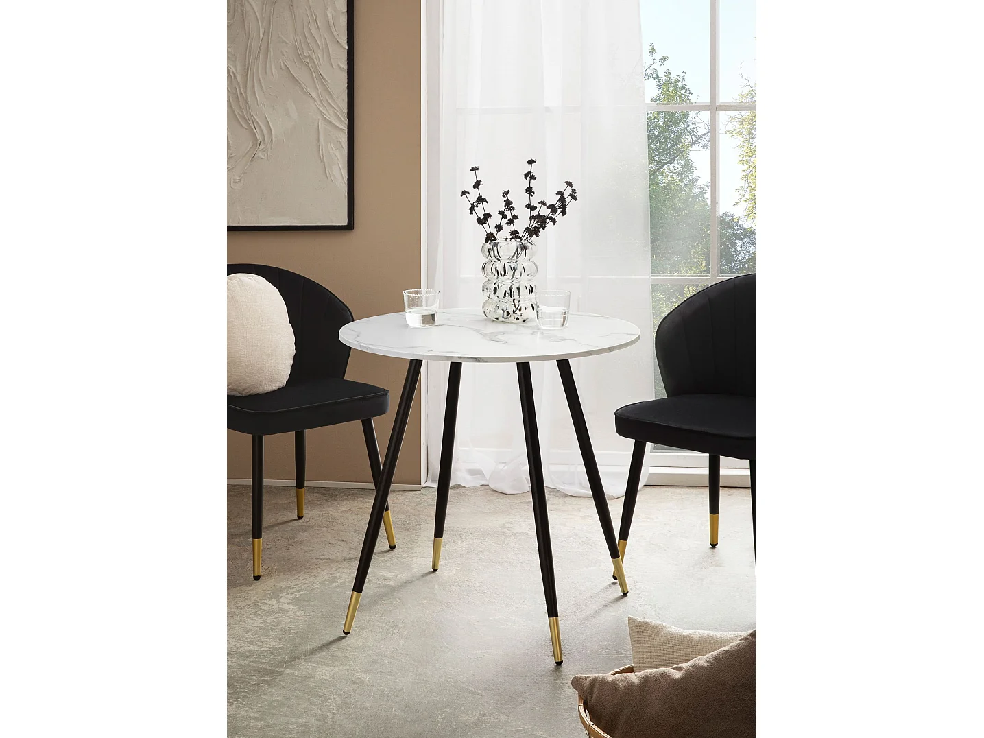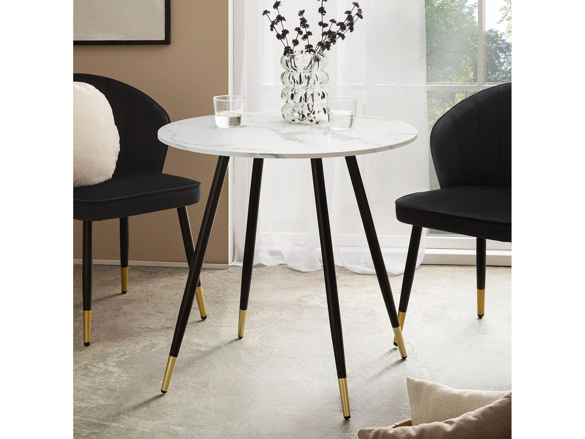 Table Salle à Manger 75 x 75 x 76 cm Petite Blanc Effet Marbre Pieds Métal Moderne