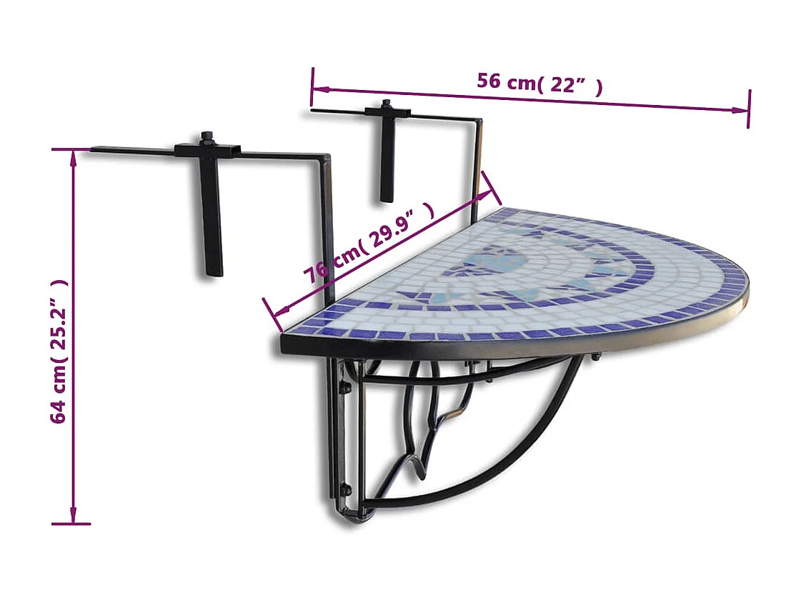 Table suspendue de balcon Bleu et blanc Mosaïque GHR71197