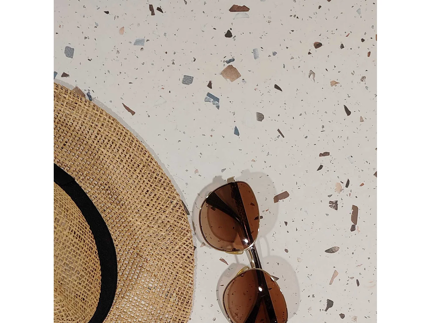 Table terrasse pliable en Compact HPL décor terrazzo 70 x 70