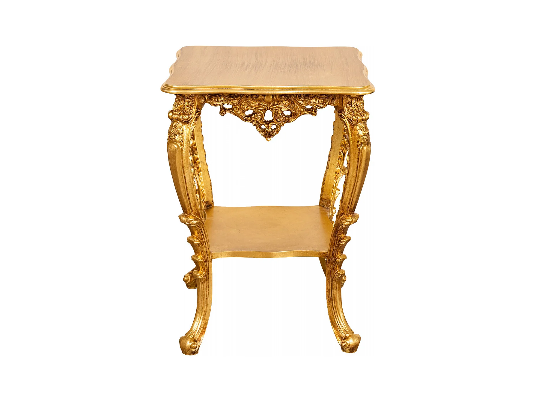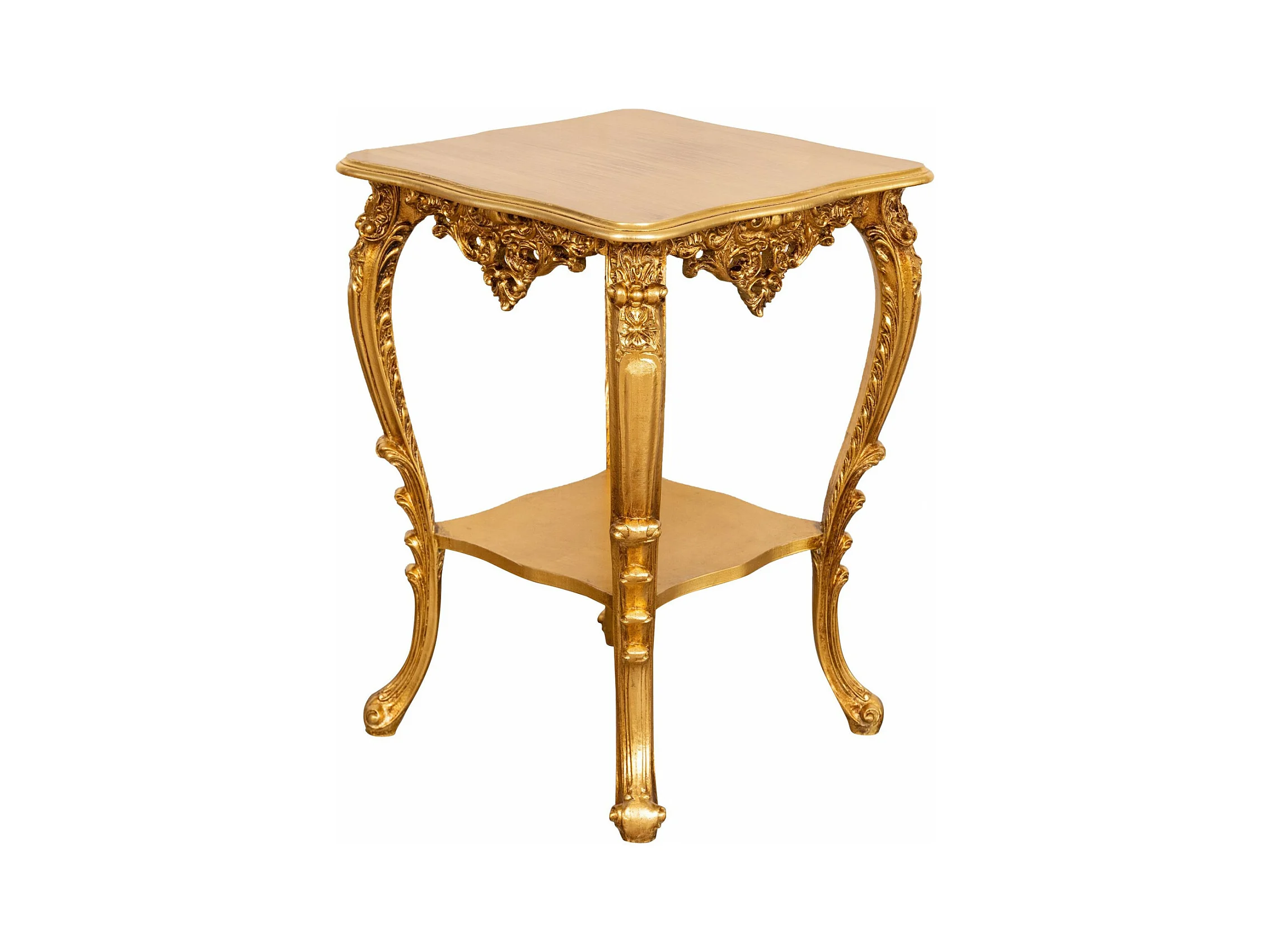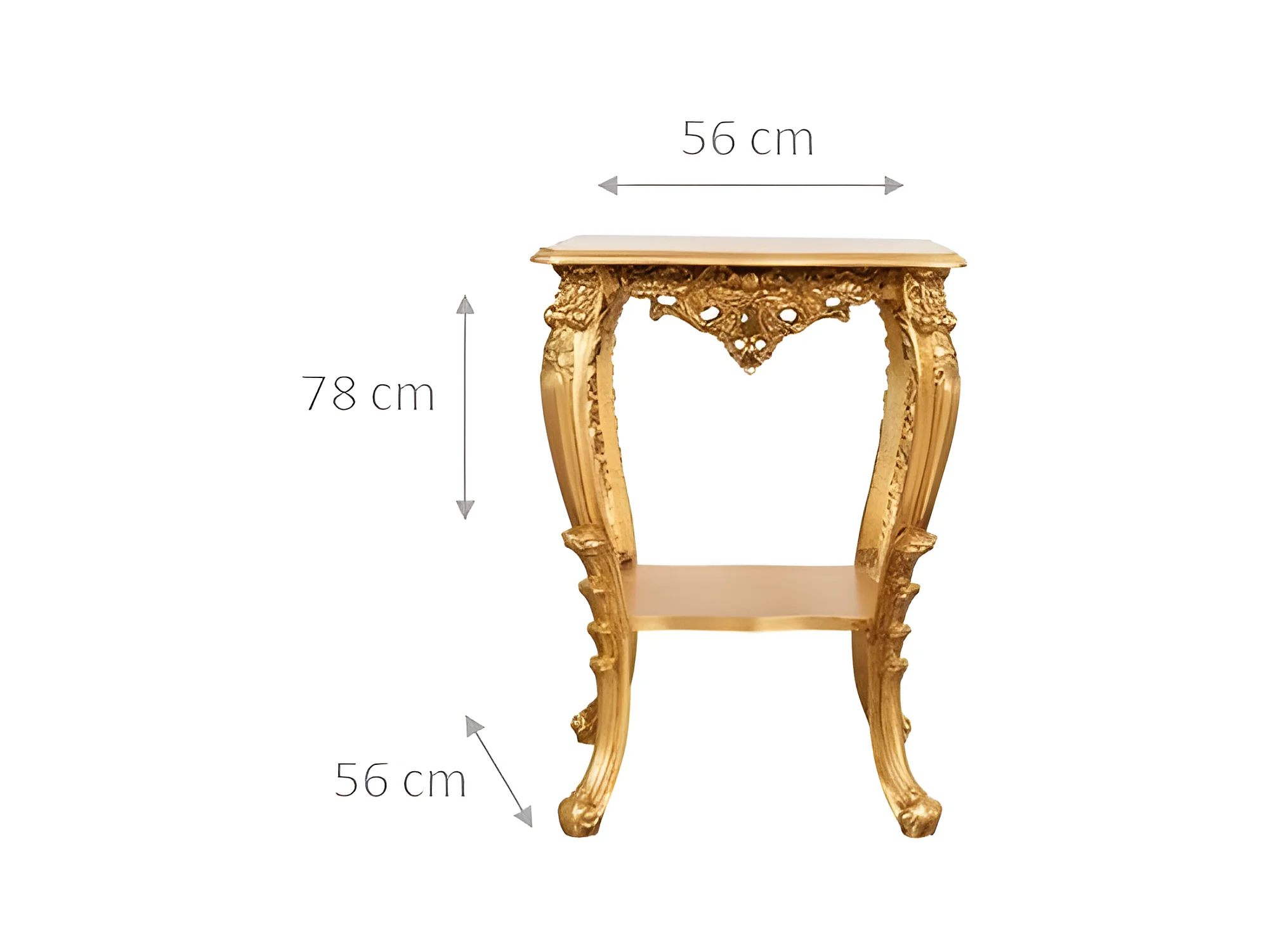 Table vase d'entrée en bois massif finition or antique - Console d'entrée - Table de rangement - 76x56cm fabriquée en Italie