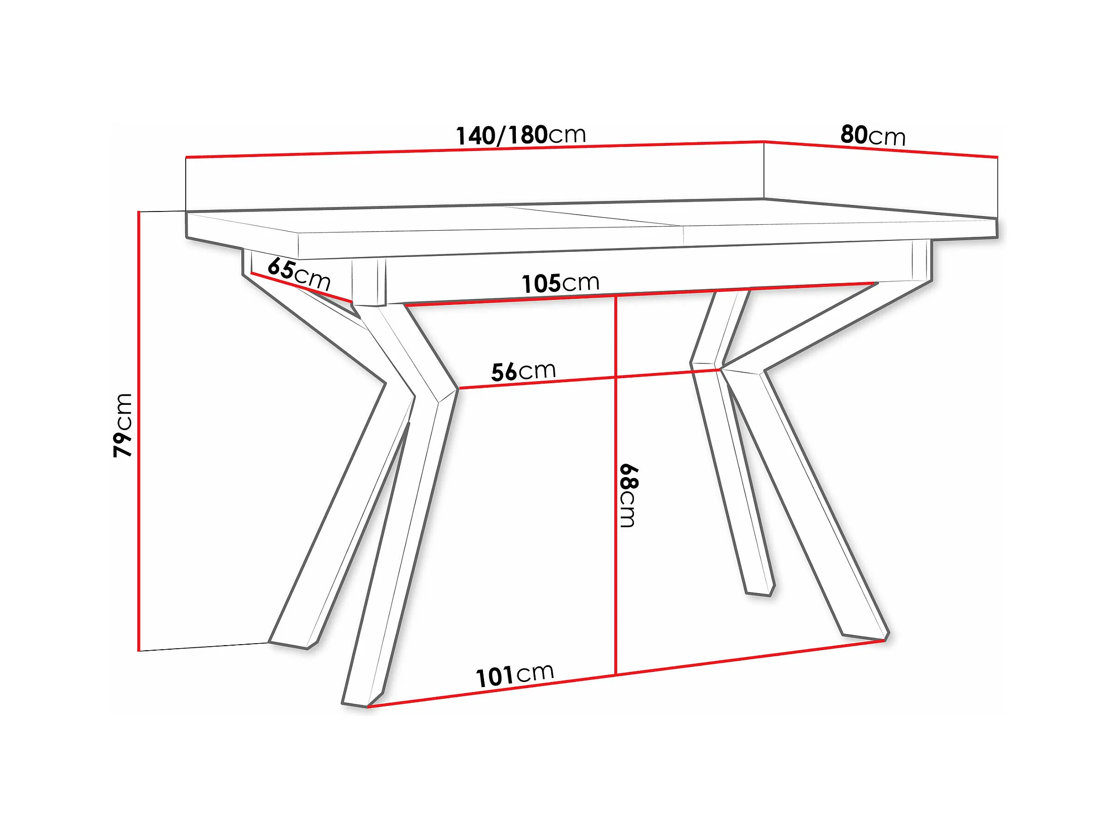 Table Victorville 328, Noir|Blanc, 79x80x140cm, Allongement, Stratifié, Métal