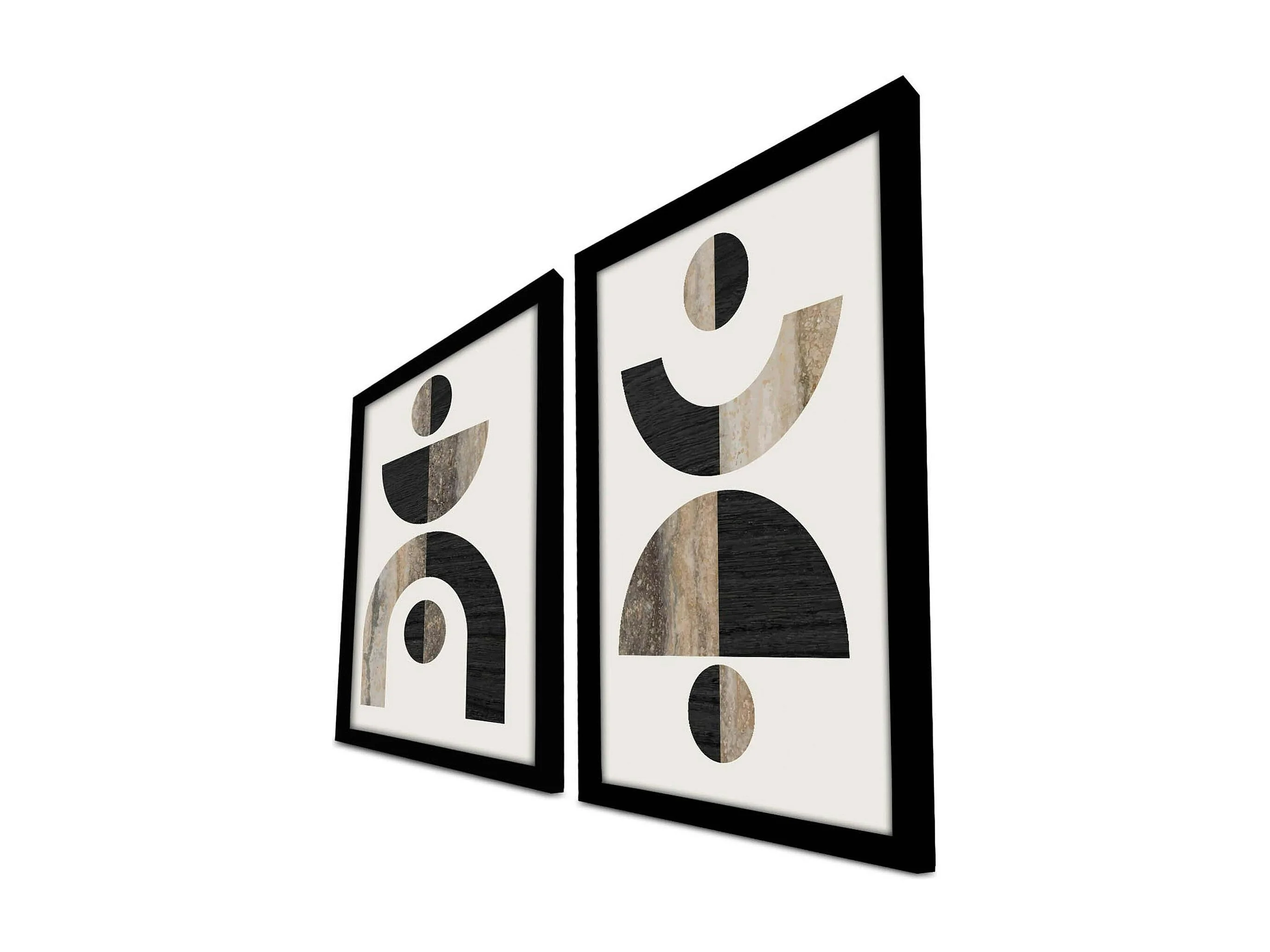 Tableau abstrait géométrique noir et marbre (set de 2)
