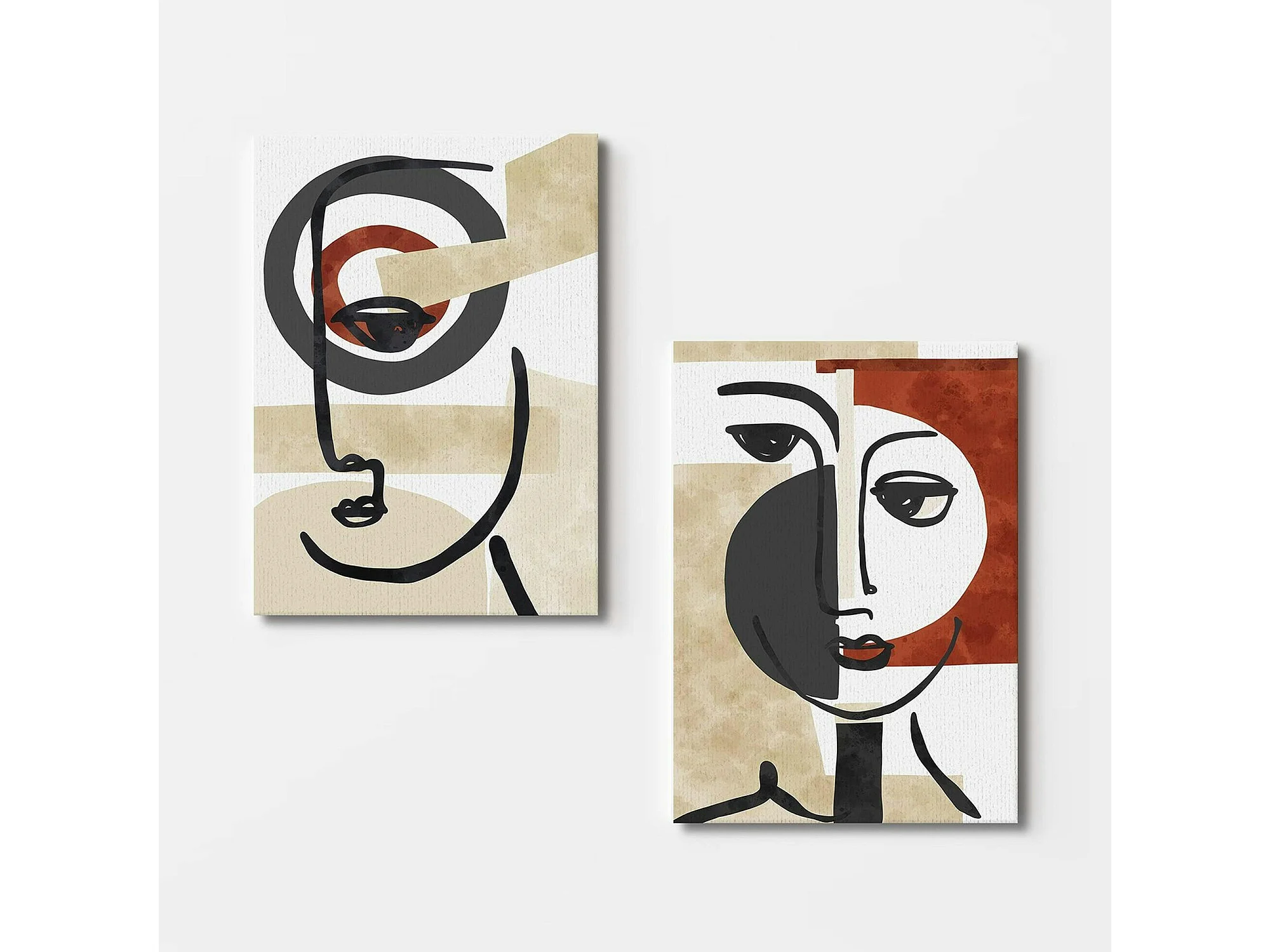 Tableau abstrait soleil et tons nature – moderne (set de 2)