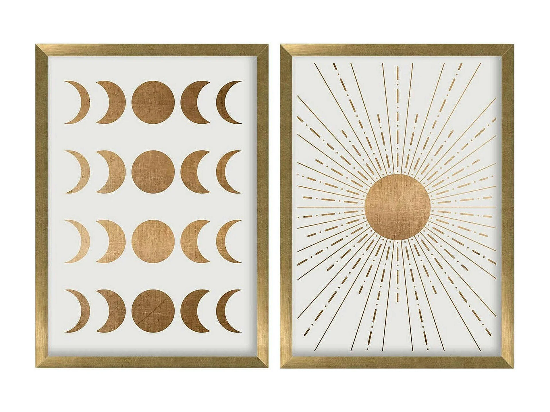 Tableau décoratif doré soleil et lune – cadre (set de 2)