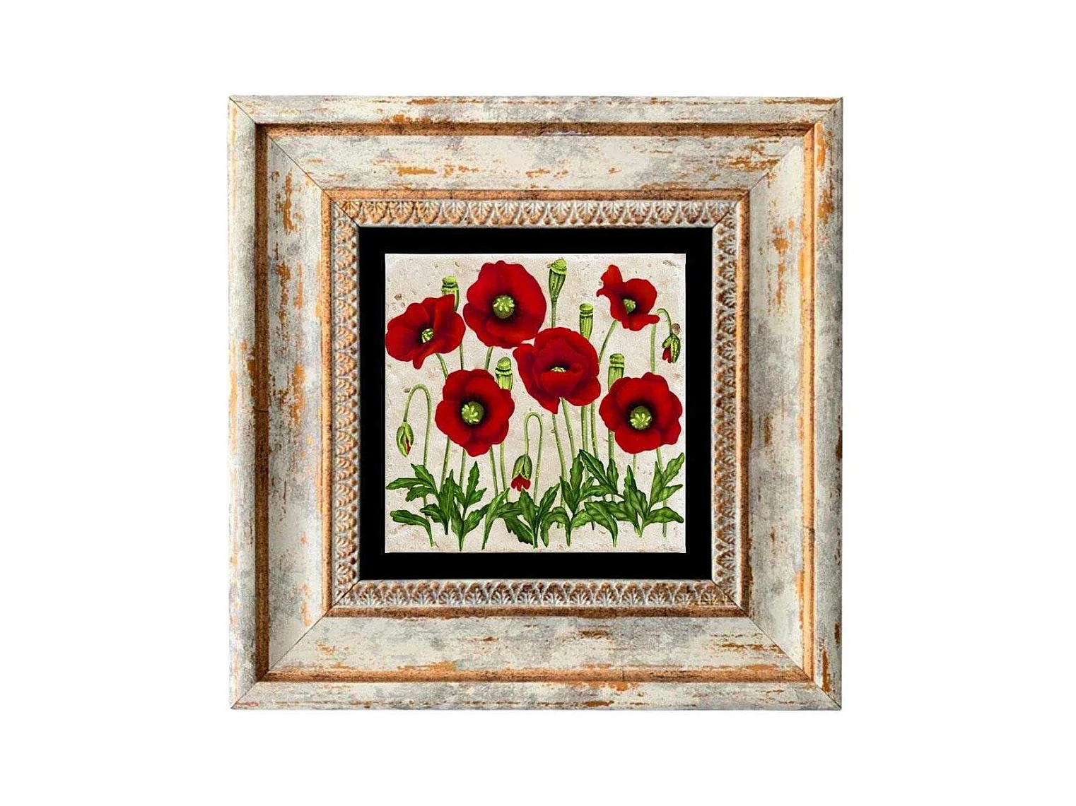 Tableau décoratif en bois et métal 20 x 20 cm Fleur rouge