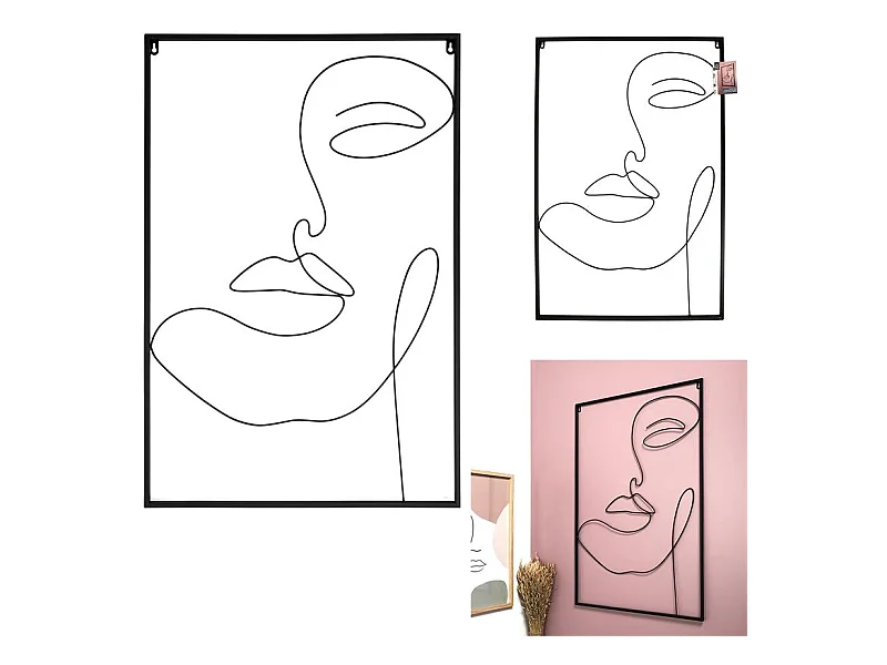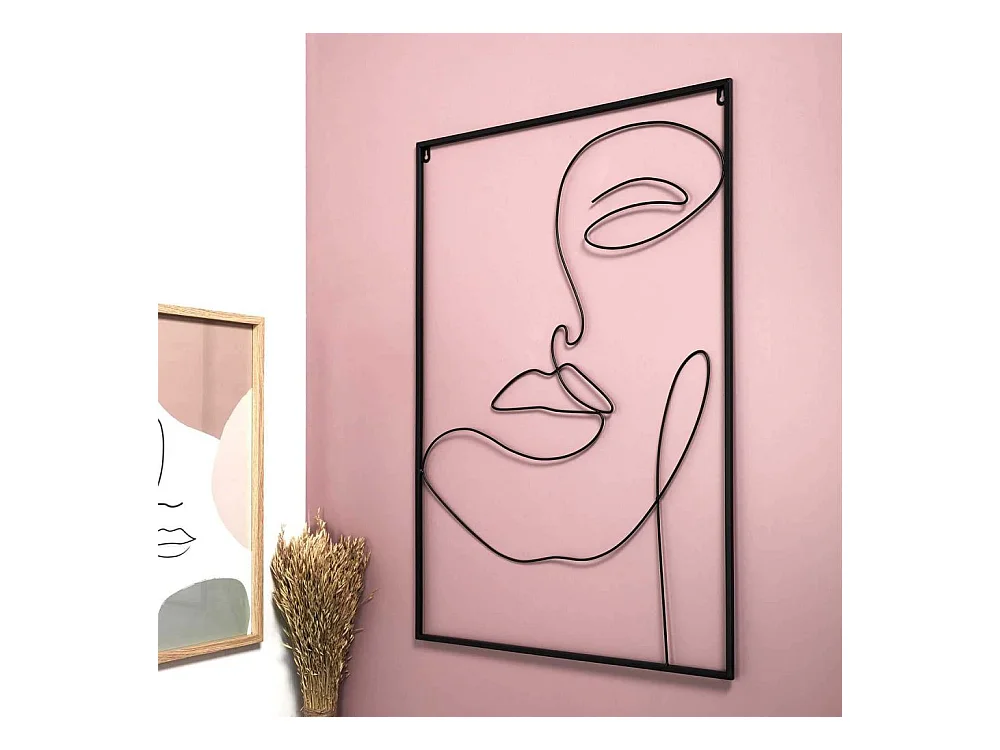 Décoration Murale Encadrée "2 Visages" 90cm Noir & Naturel