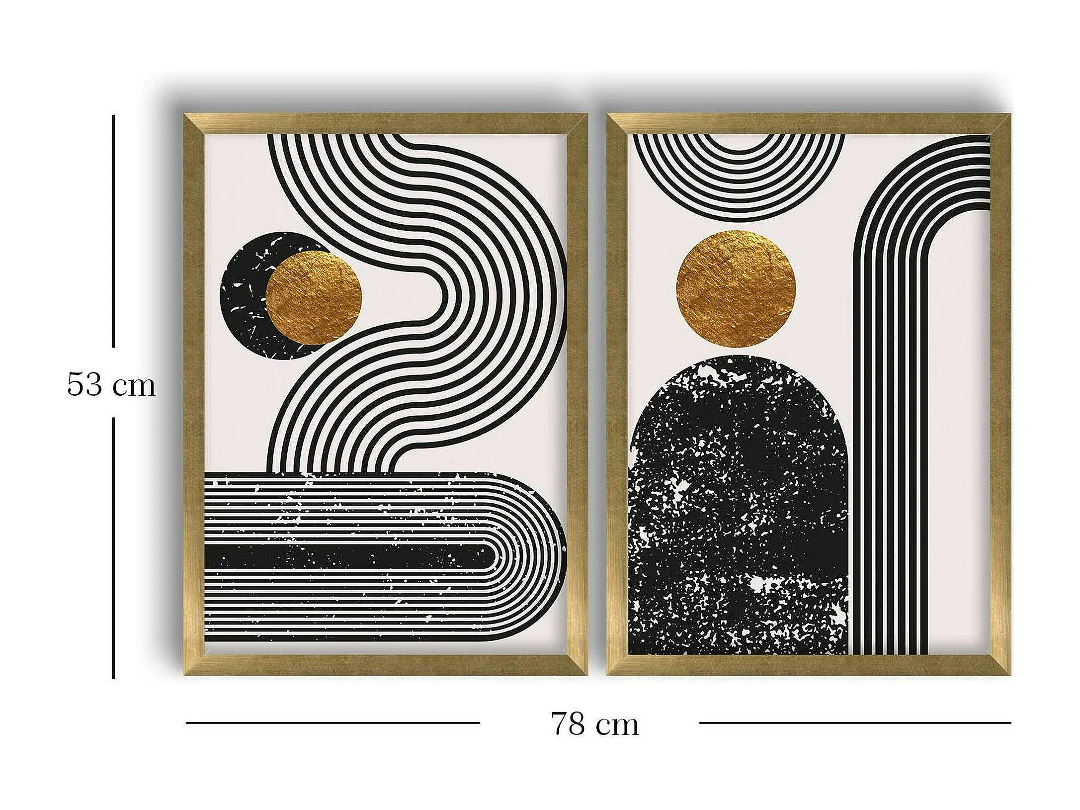 Tableau graphique design noir et or – cadre doré (set de 2)