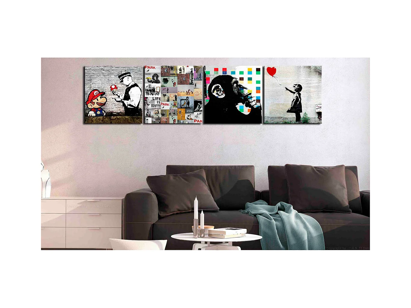 Tableau Imprimé 4 Panneaux "Banksy - Collage" 40 x 40 cm