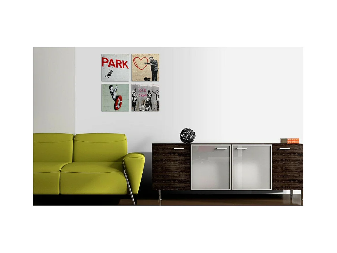 Tableau Imprimé 4 Panneaux "Banksy - Collage" 80 x 80 cm