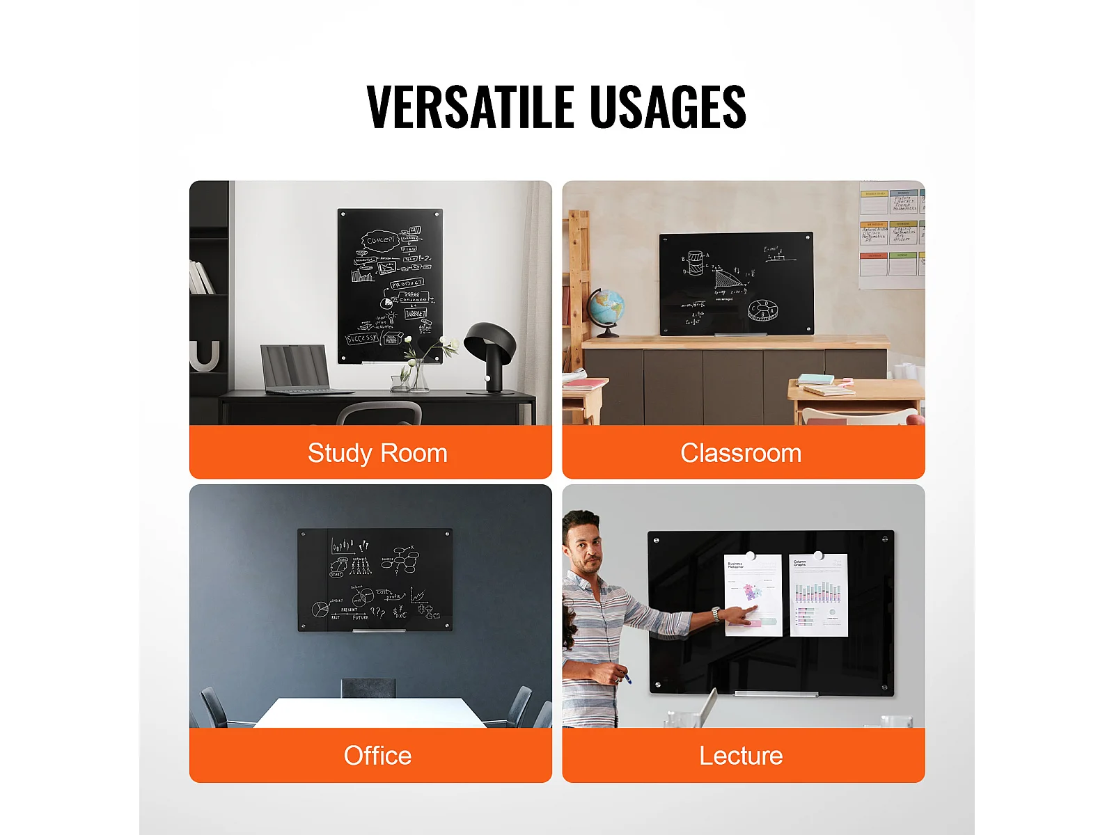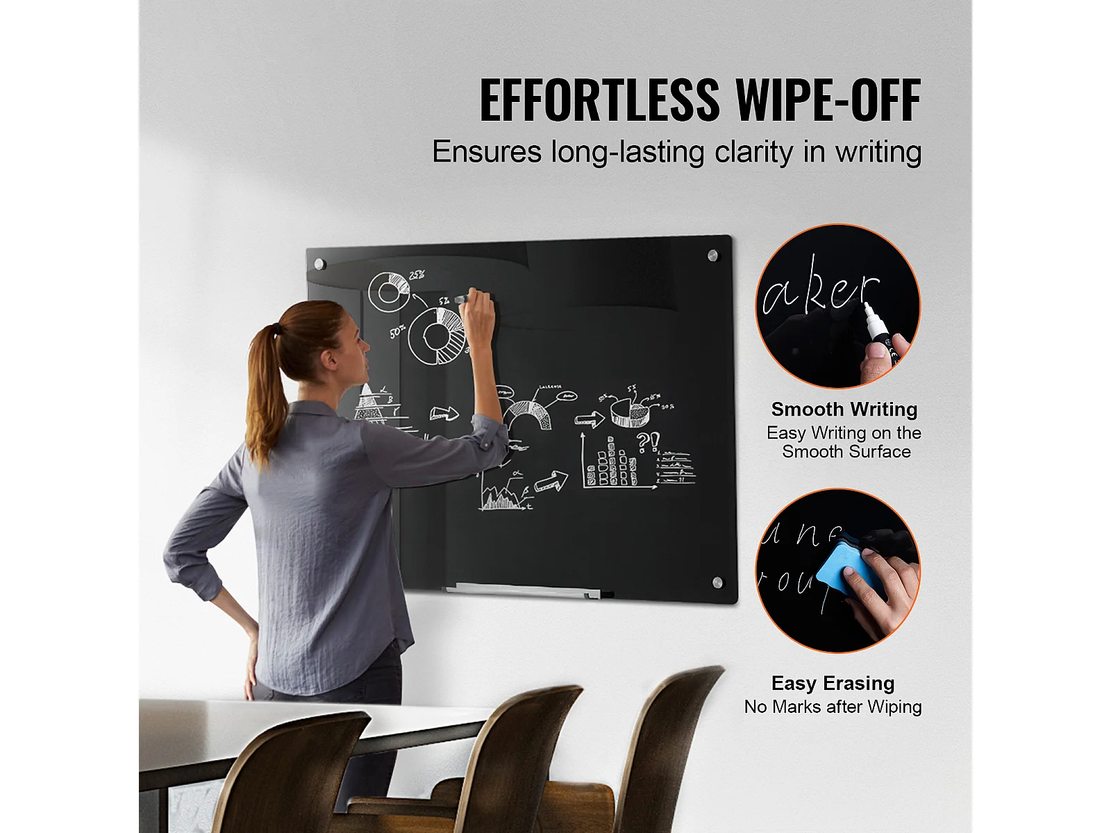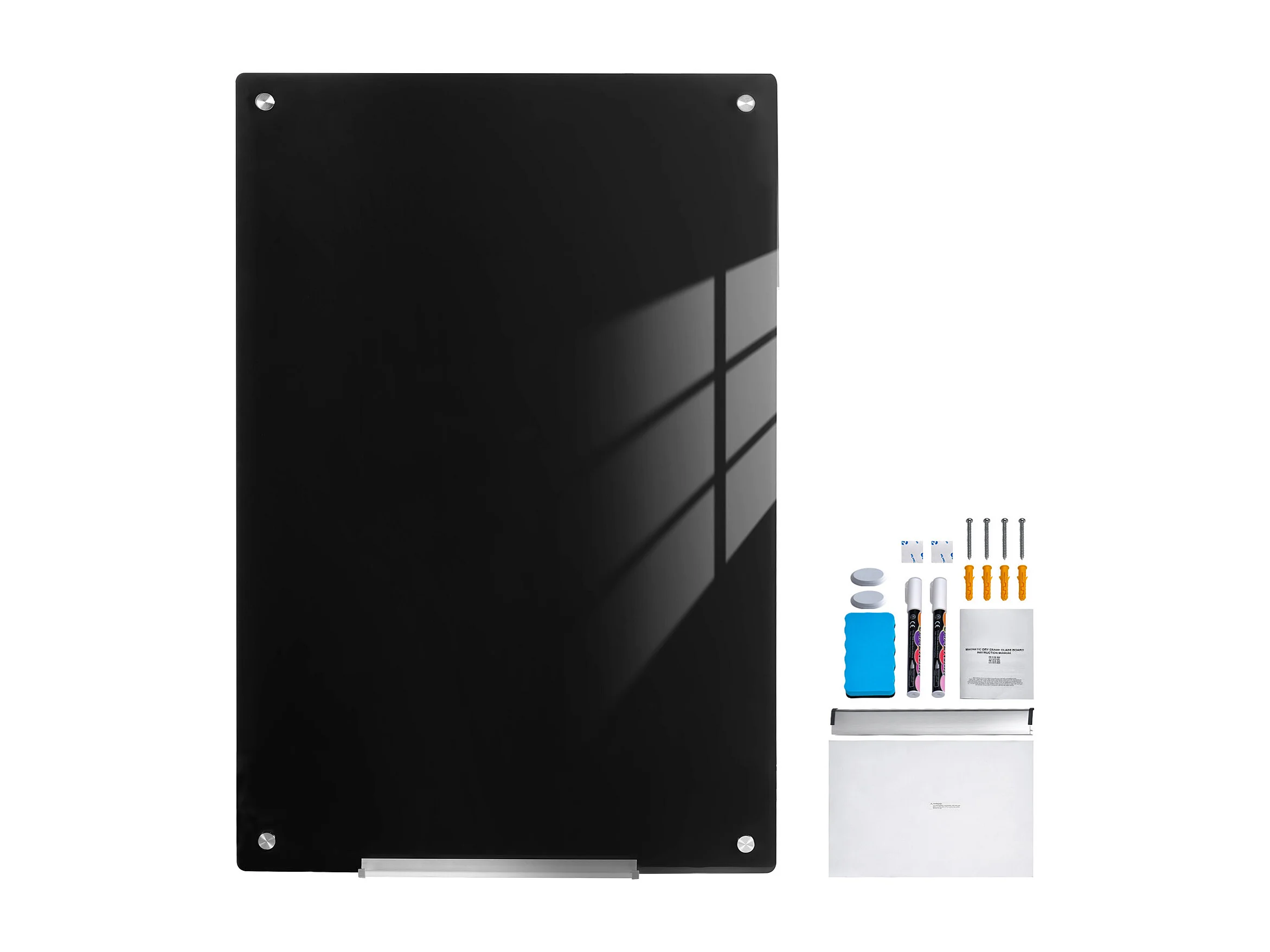 Tableau Magnétique en Verre Noir SucceBuy, 90 x 60 cm, Effaçable à Sec Sans Cadre