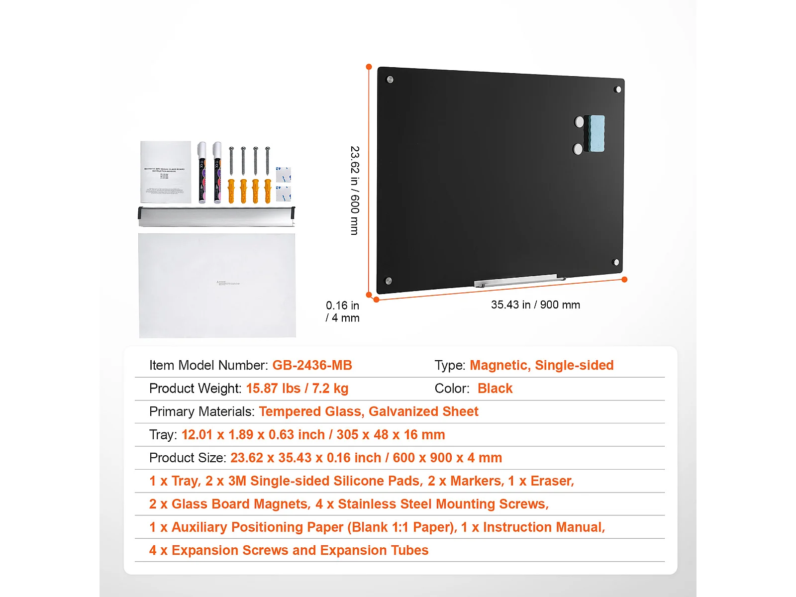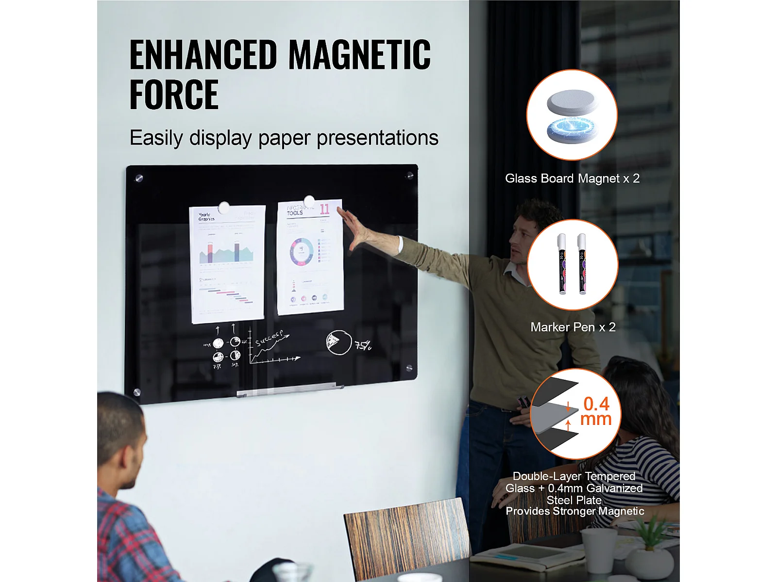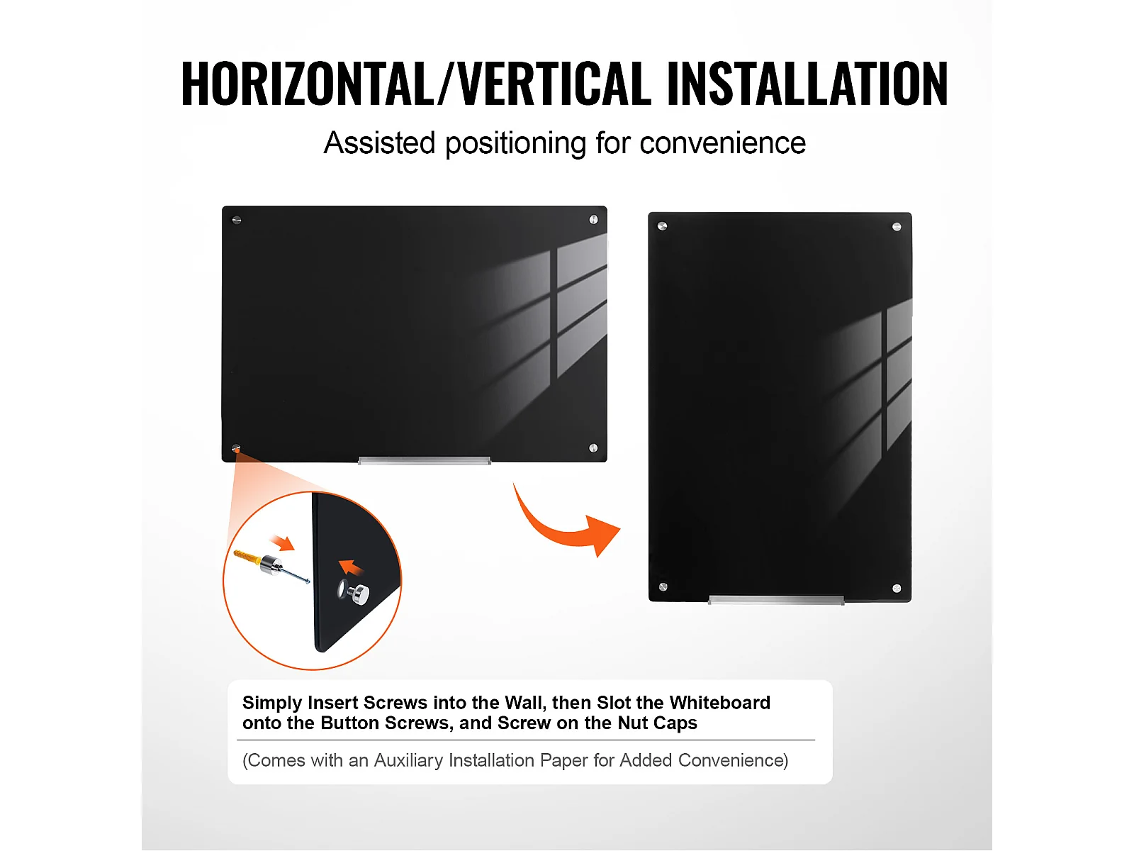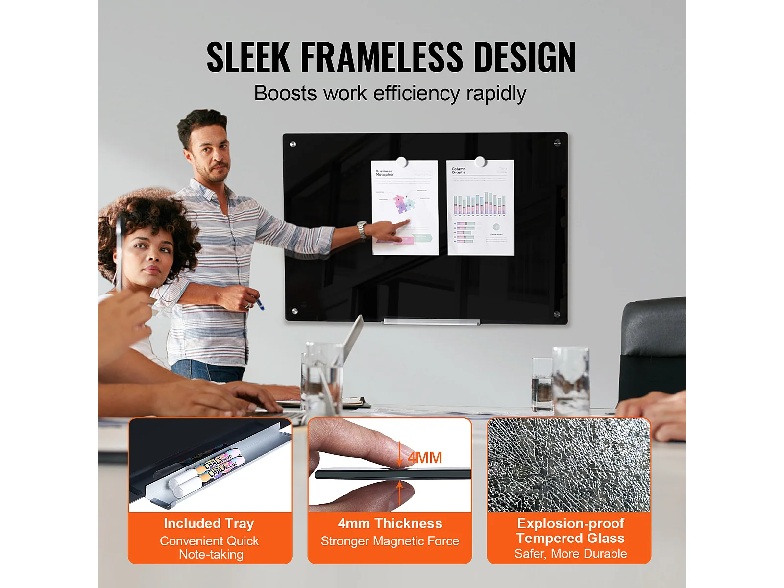 Tableau Magnétique en Verre Noir SucceBuy, 90 x 60 cm, Effaçable à Sec Sans Cadre