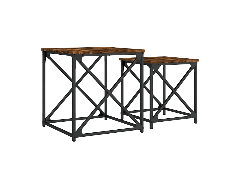 Tables basses gigognes 2 pièces chêne marron bois d'ingénierie