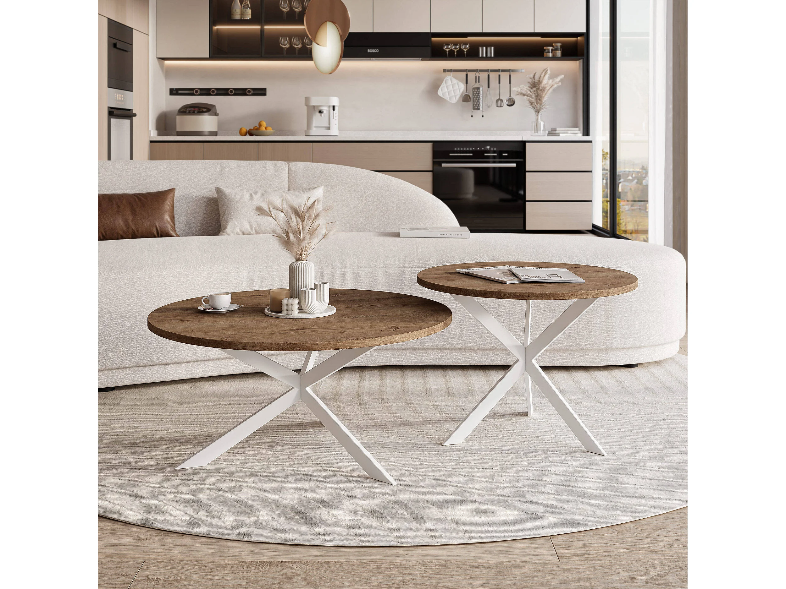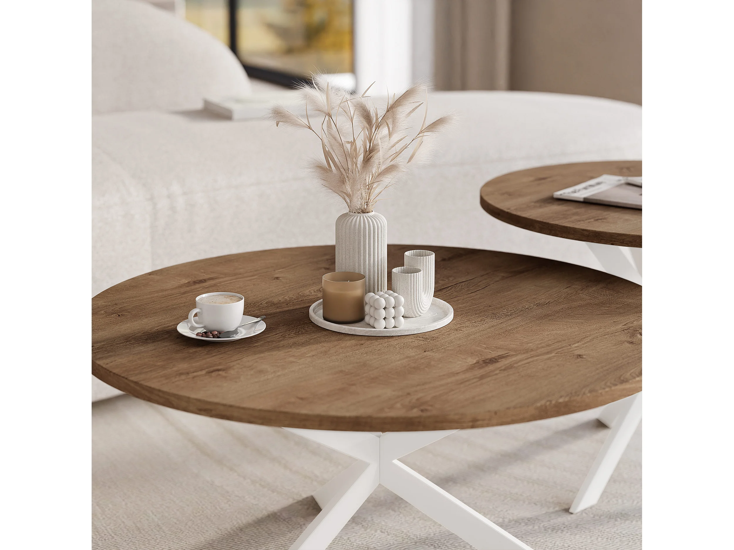 Tables basses gigognes LIBERO - chêne Lefkas et métal blanc
