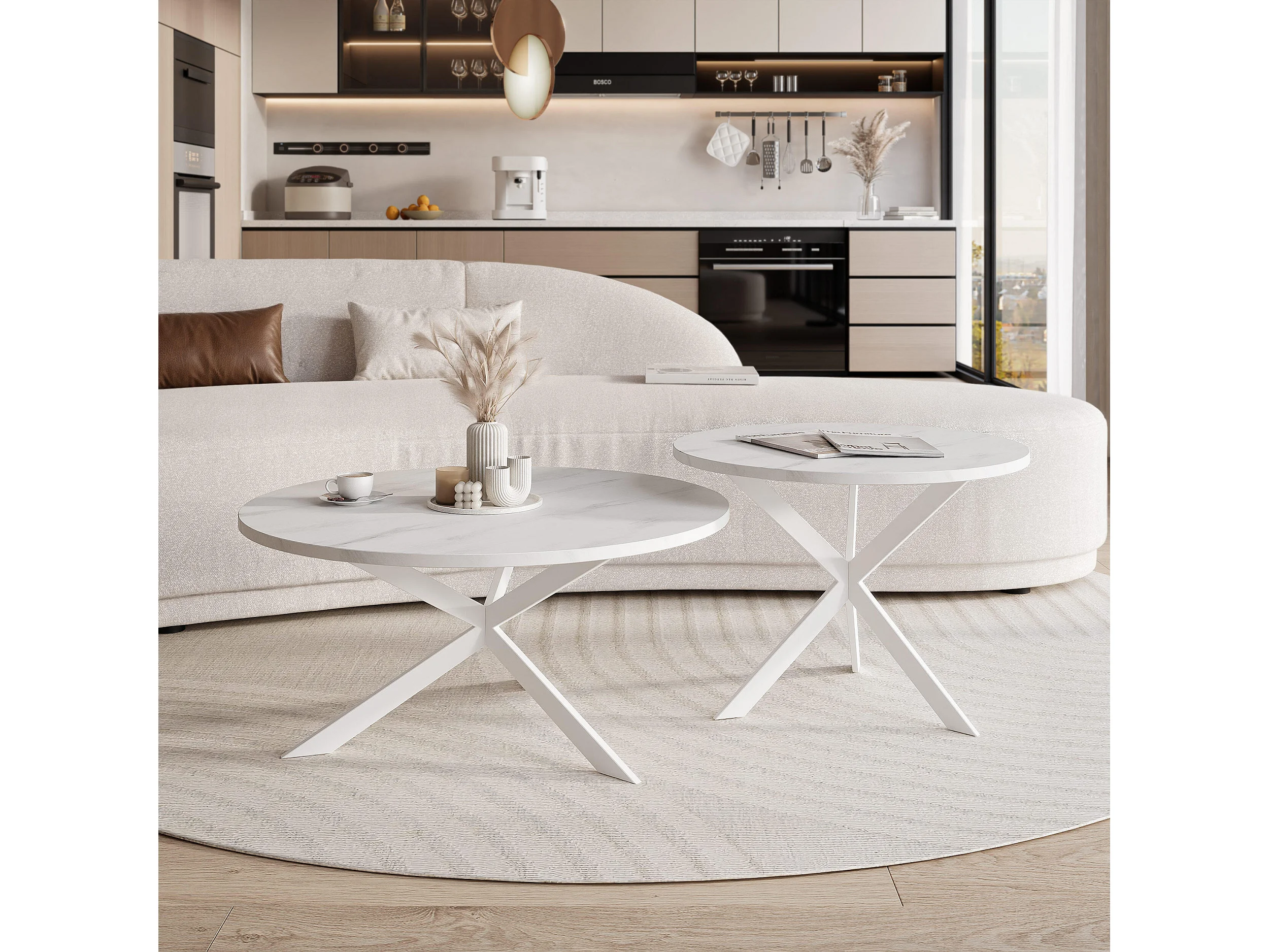Tables basses gigognes LIBERO - Marbre blanc et métal blanc