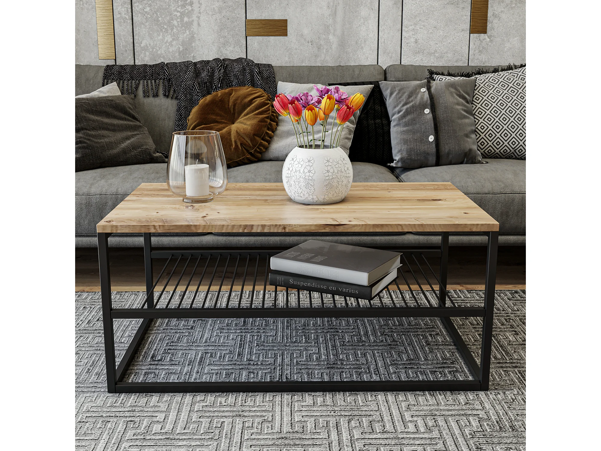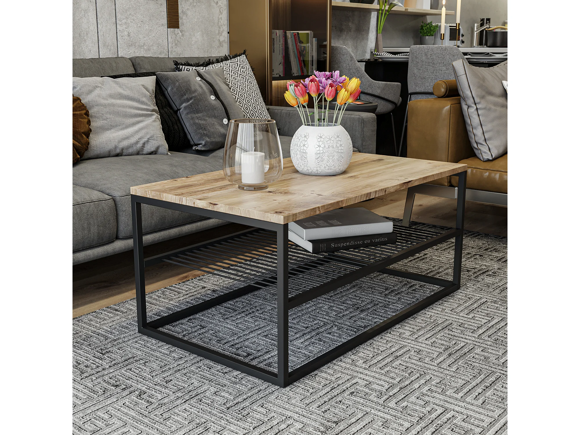 Tables basses mississipi dotée de pieds métalliquesen couleur pin atlantique noir. 95x43x55cm