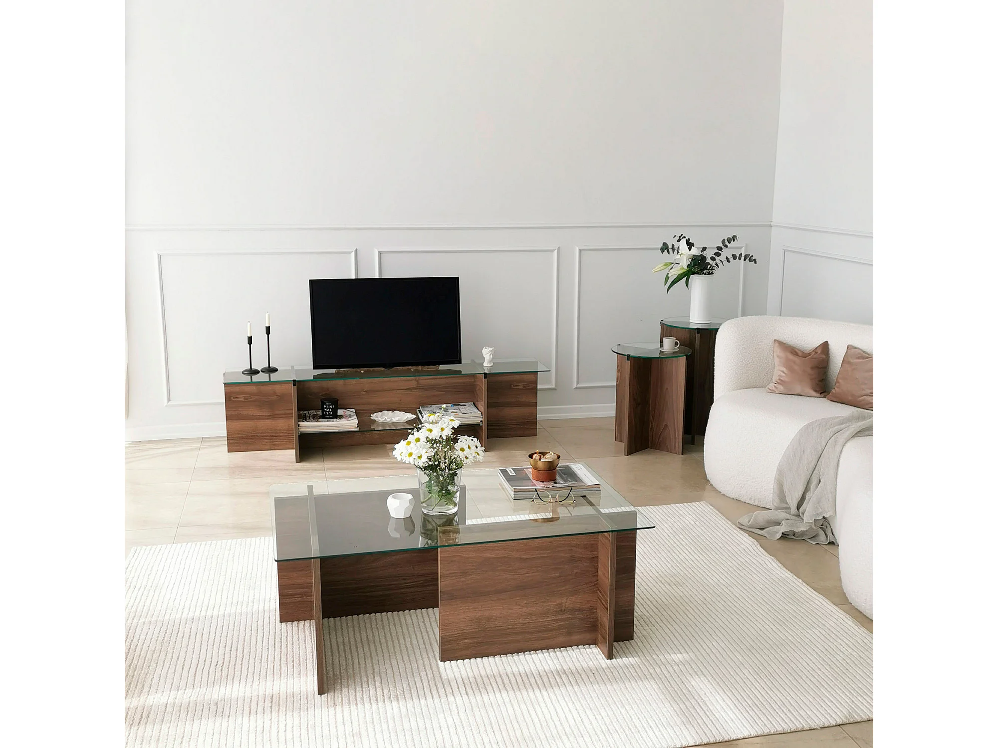 Tables basses rhin design en verre trempé en couleur nogal. 105x40x65cm