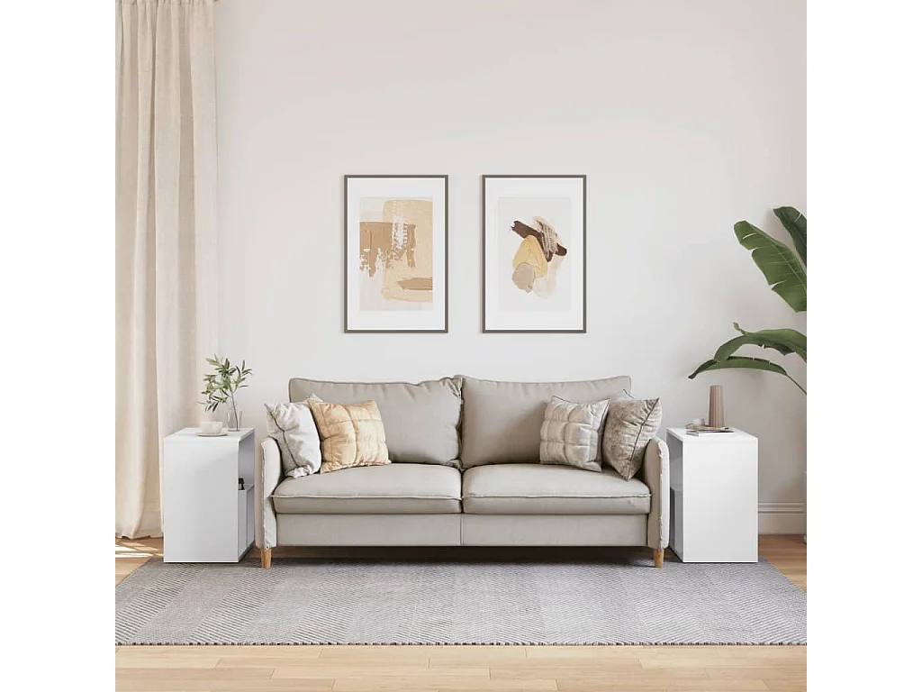 Tables basses 2 pcs blanc brillant 50x50x40cm bois d'ingénierie