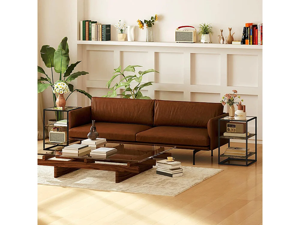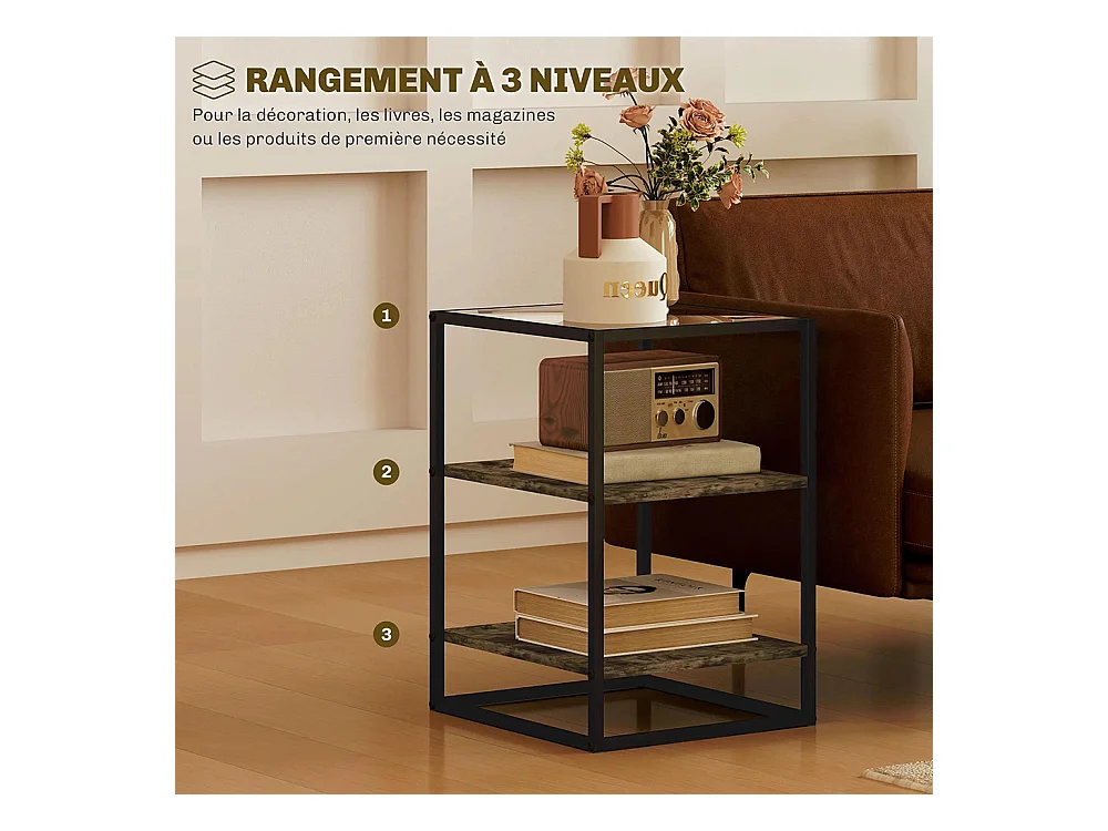 Tables d'appoint lot de 2 tables de chevet à 3 niveaux avec plateau en verre trempé marron rustique