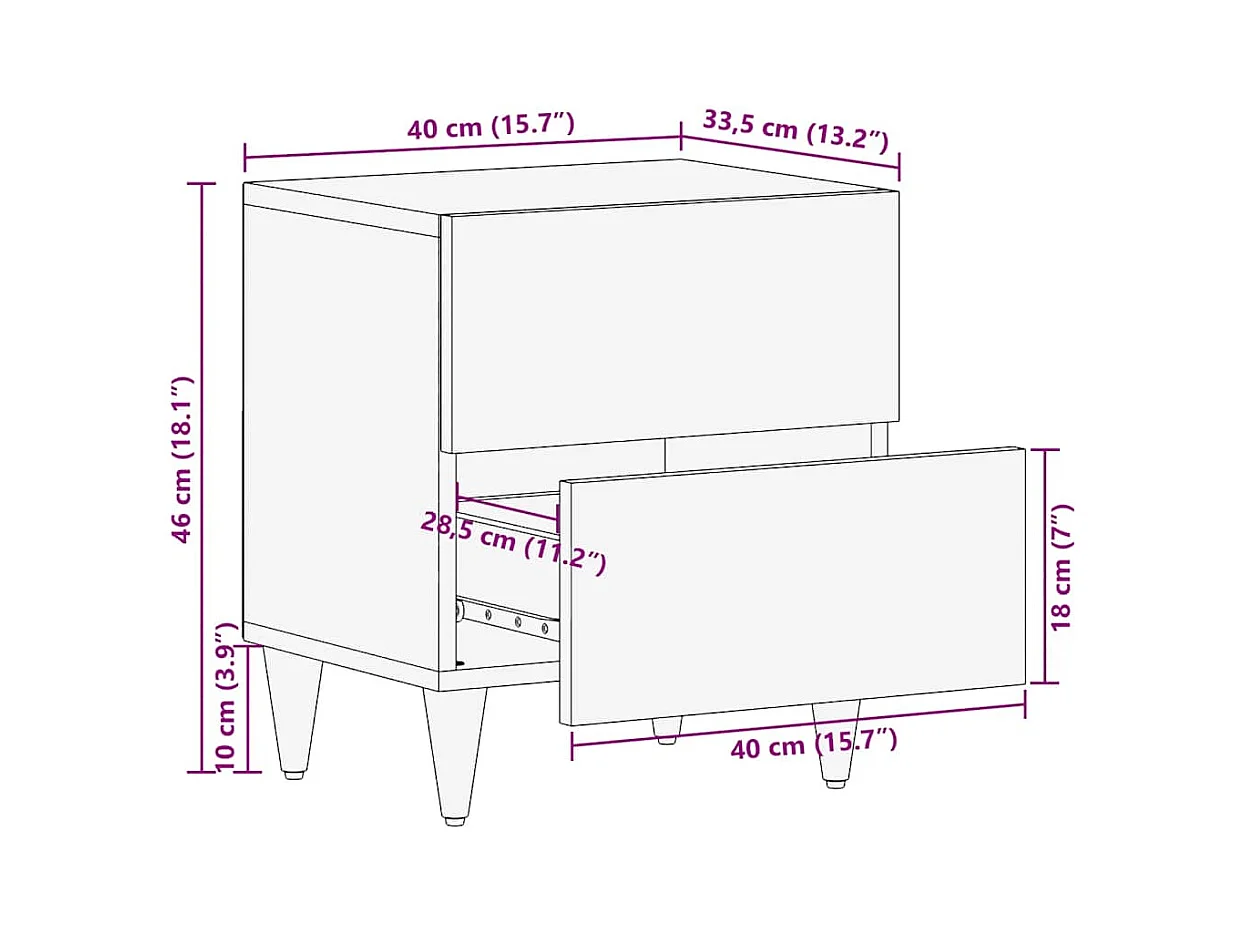 Tables de chevet 2 pcs 40x33,5x46 cm Bois de manguier solide