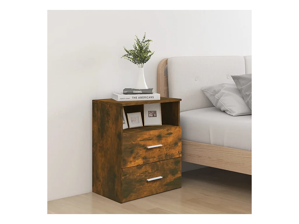 Lot de 2 Tables de chevet Chêne fumé 50x32x60 cm GHR44597
