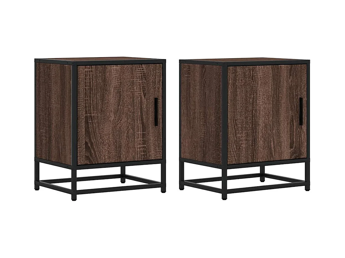 Tables de chevet 2 pcs chêne marron bois d'ingénierie et métal