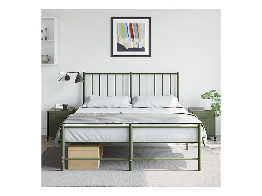 Table de chevet vert olive 36x39x68 cm acier laminé à froid FR79826