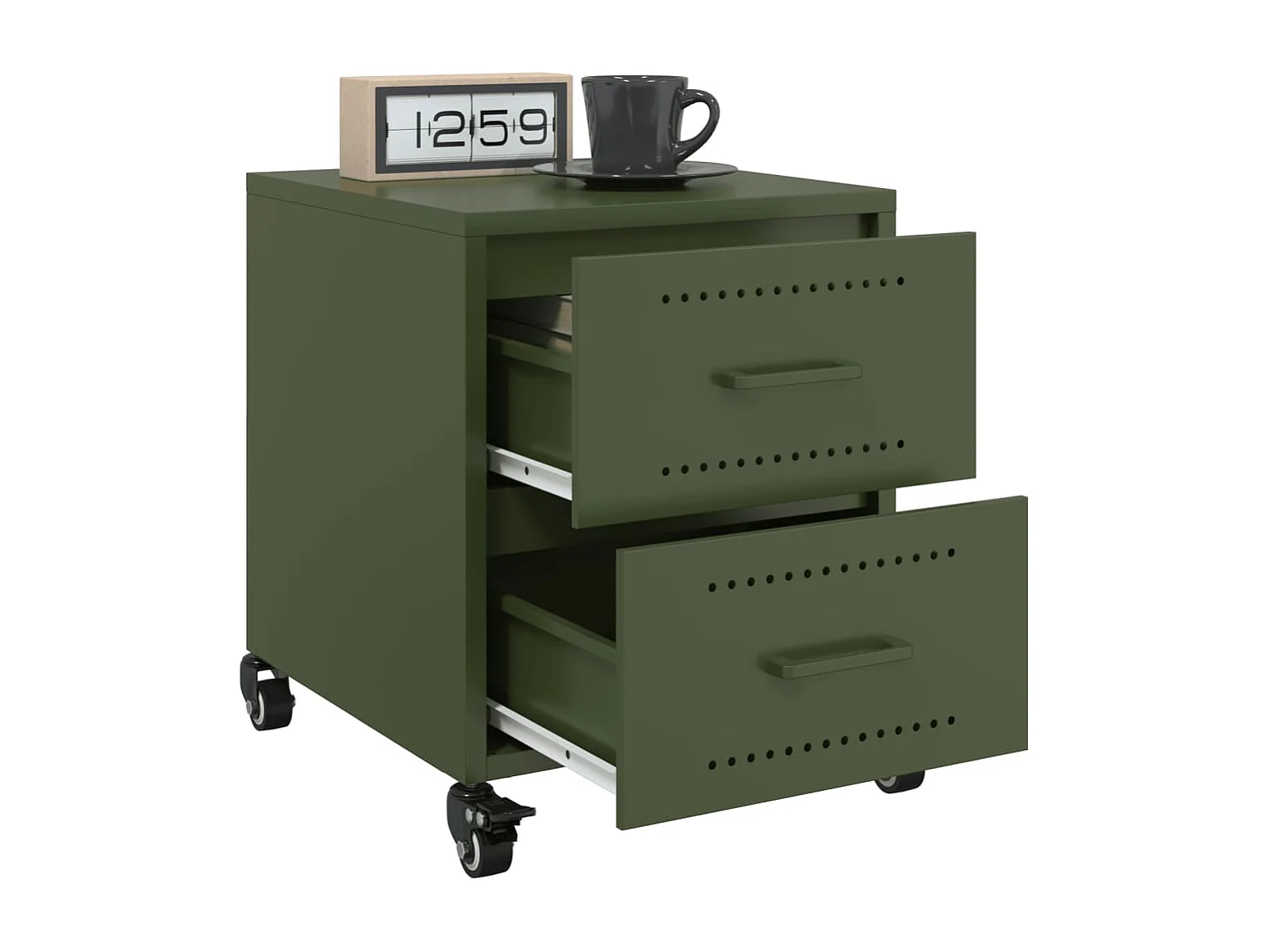 Table de chevet vert olive 36x39x68 cm acier laminé à froid FR95341