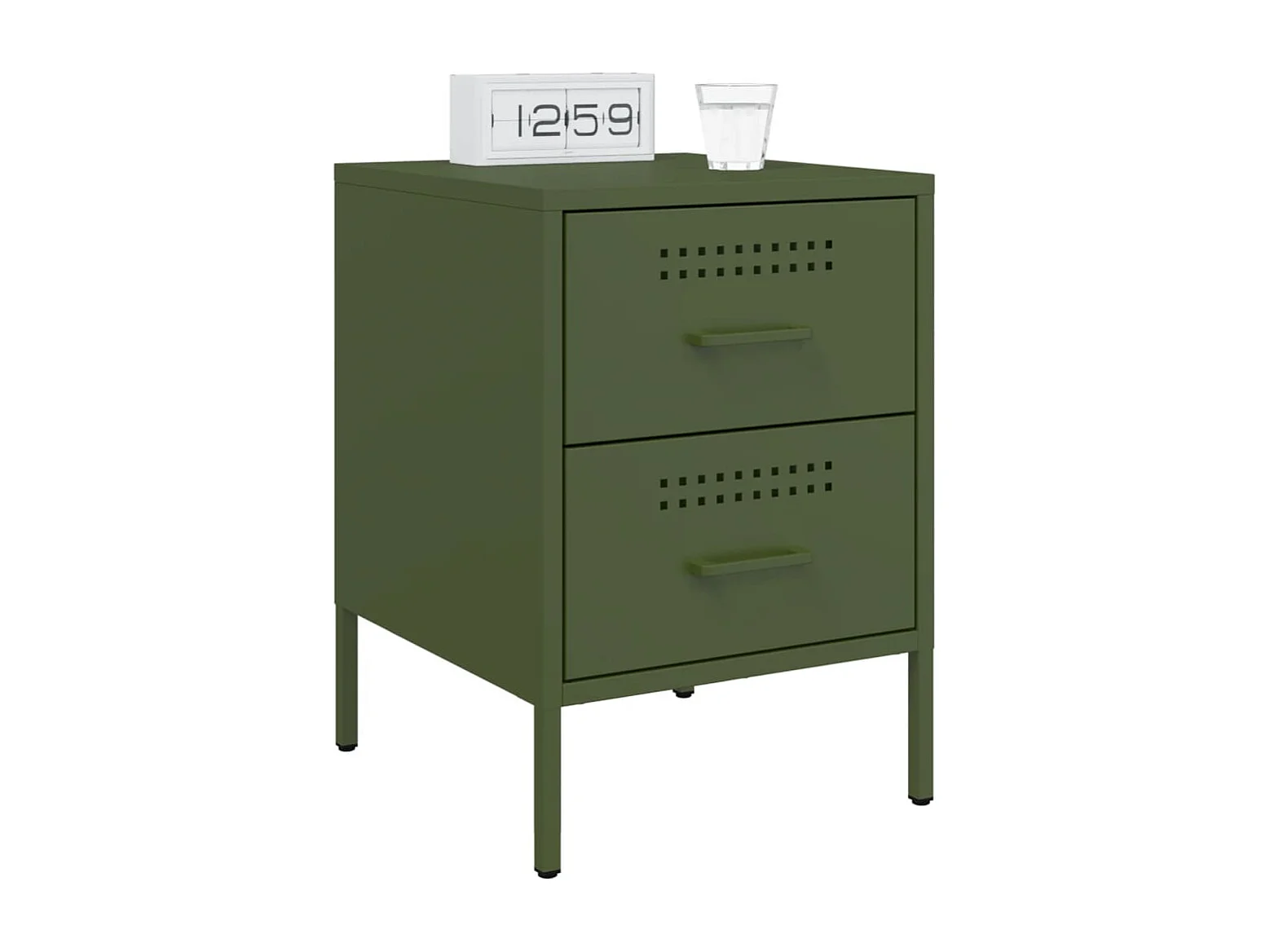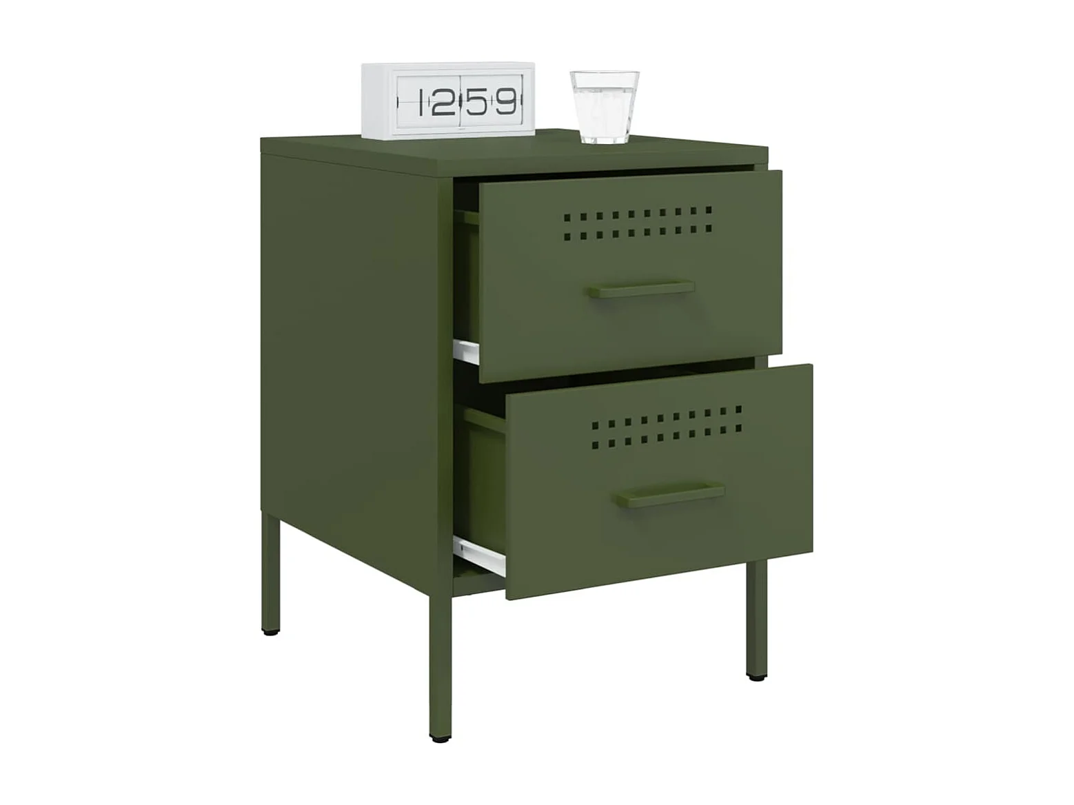 Tables de chevet 2 pcs vert olive 36x39x50,5 cm acier FR95726