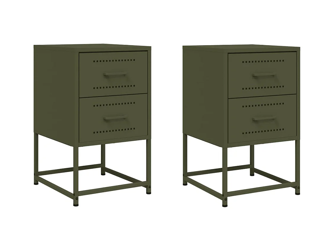 Tables de chevet 2 pcs vert olive 36x39x60,5 cm acier FR90201