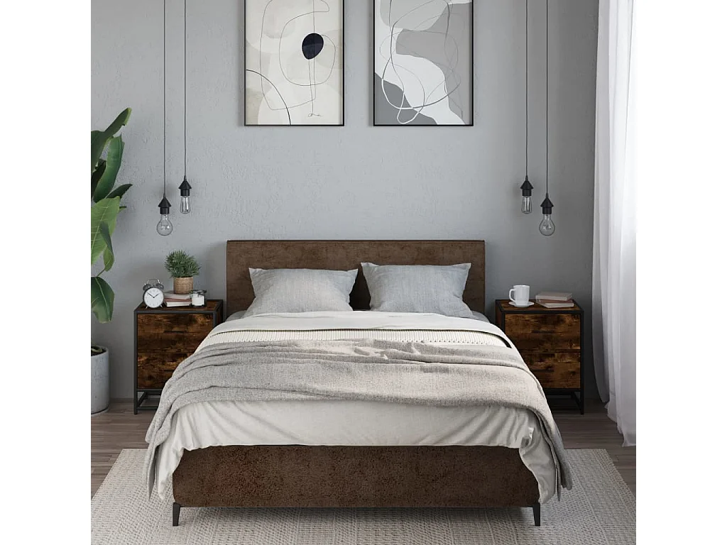 Tables de chevet 2 pièces chêne fumé bois d'ingénierie et métal