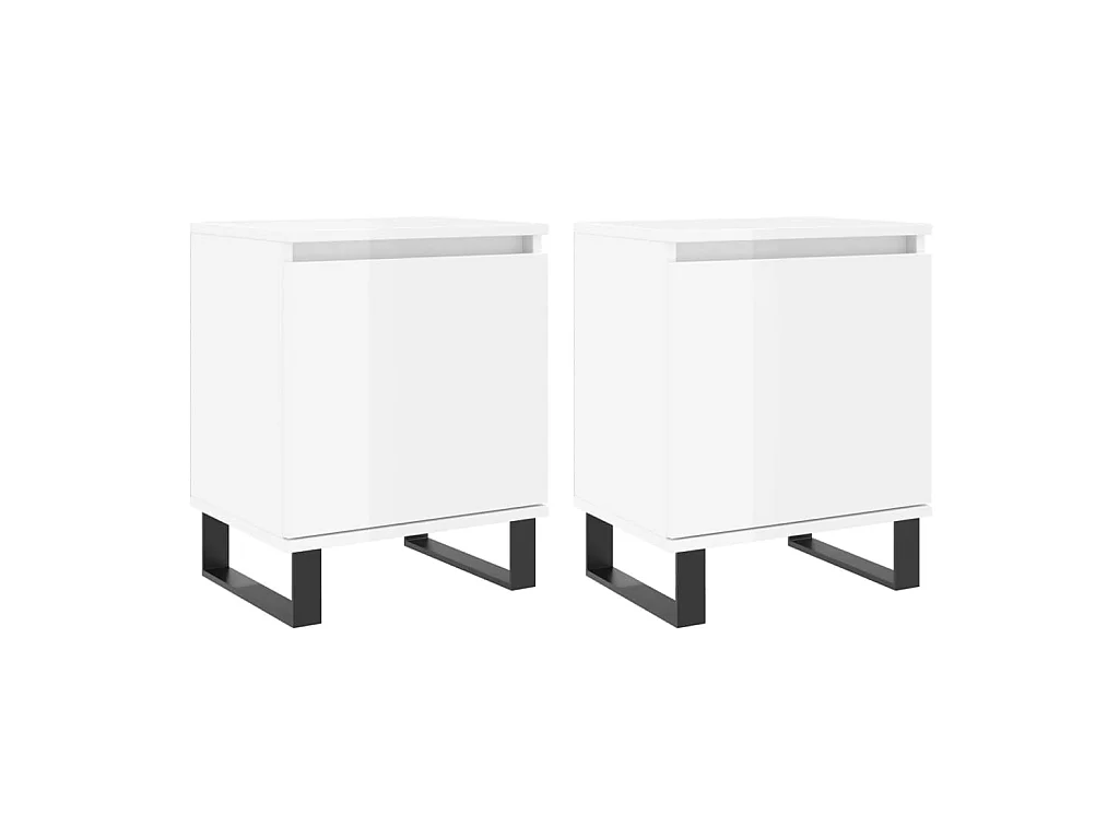 Tables de chevet pieds en métal 2 pcs blanc brillant 40x30x50cm