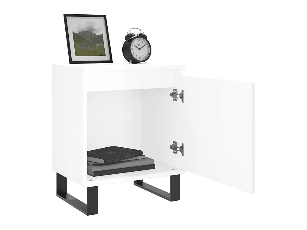 Table de chevet avec pieds en métal blanc brillant 40x30x50 cm