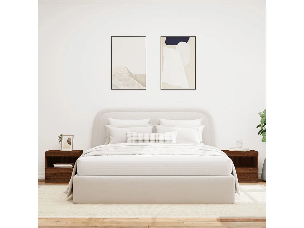 Lot de 2 Tables de chevet et lumières LED chêne marron FR36399