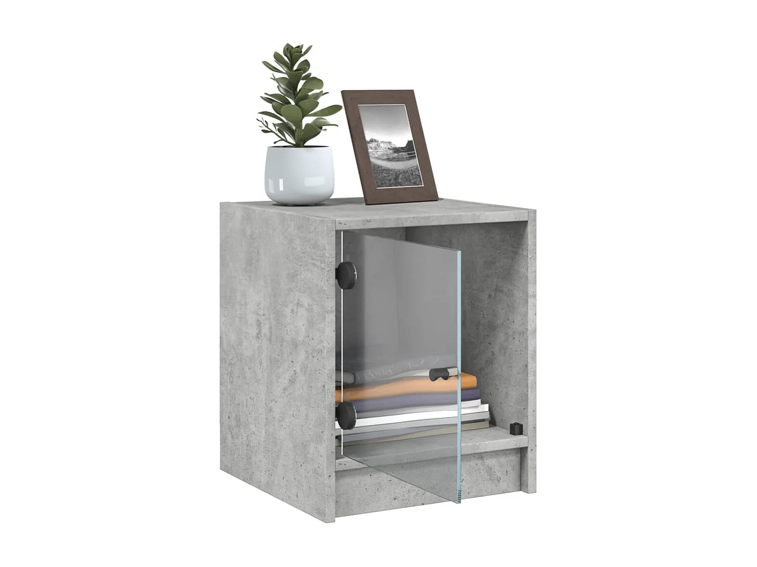 Tables de chevet et portes vitrées 2 pcs gris béton 35x37x35 cm