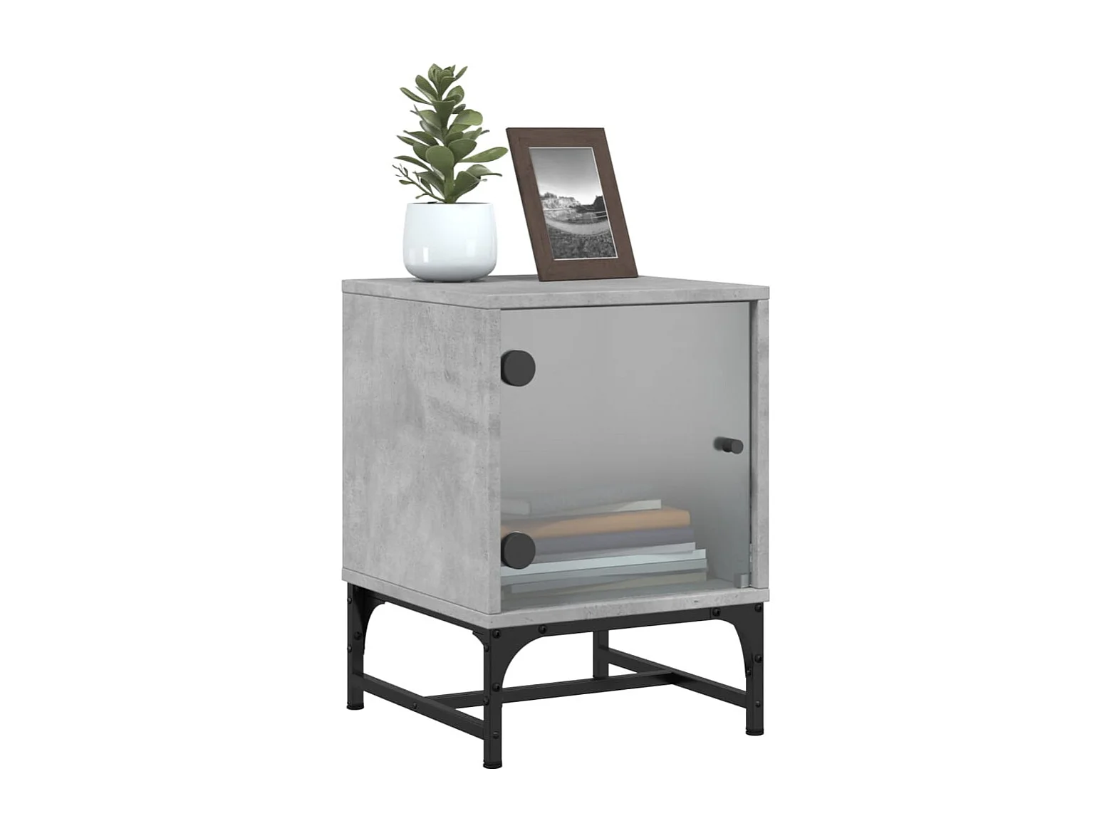 Tables de chevet et portes vitrées 2 pcs gris béton 35x37x35 cm