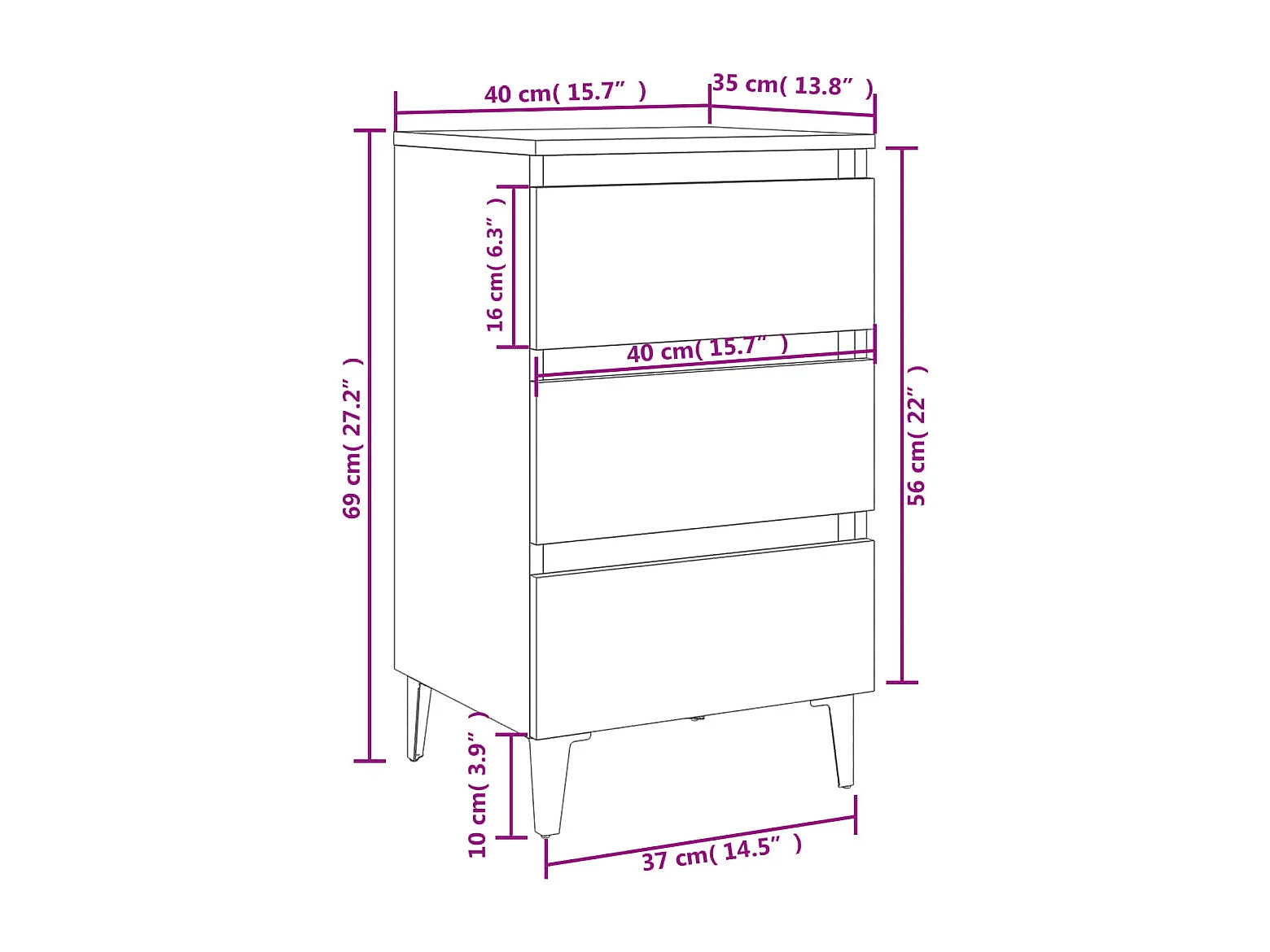 Drom Tables de chevet 2 pcs sonoma gris 40x35x69 cm bois ingénierie