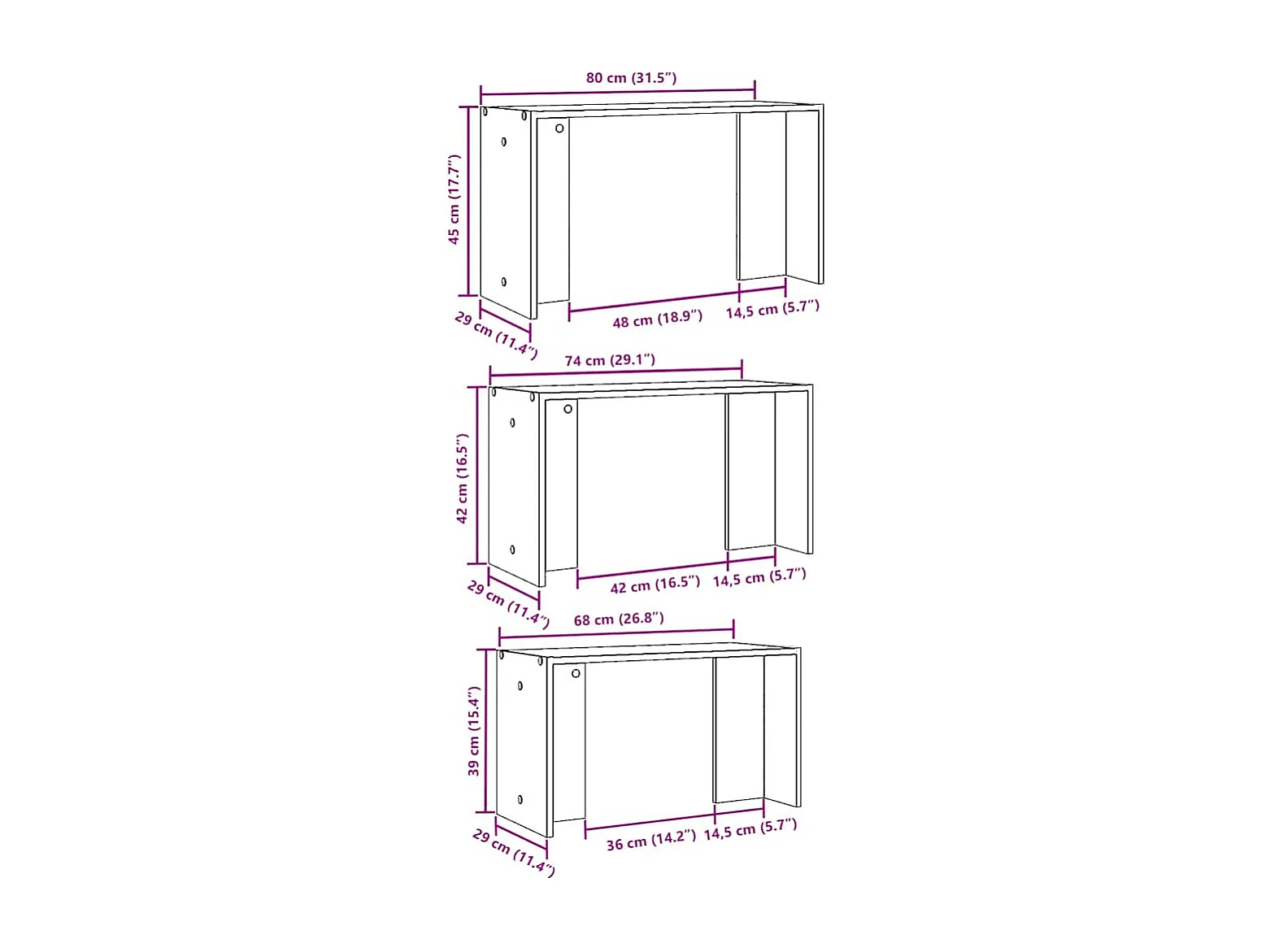 Tables gigognes 3 pcs sonoma gris bois d'ingénierie
