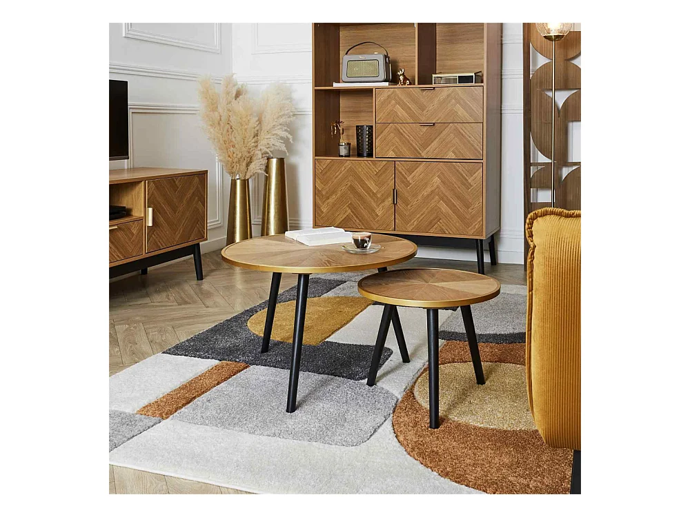 Table basse Tweak - Manguier massif - Couleur sable - Lot de 2