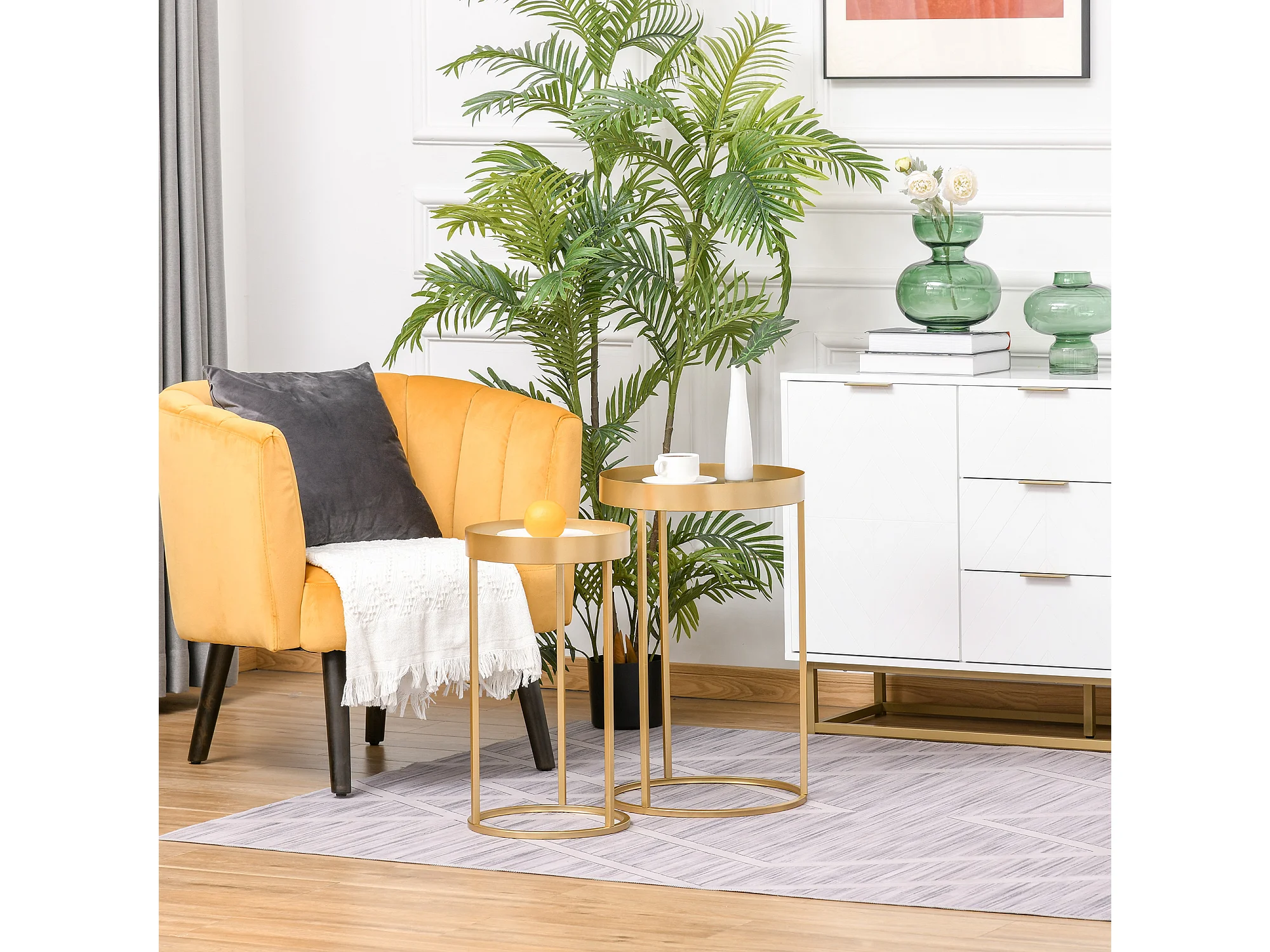 Lot de 2 tables basses gigognes rondes style art déco - acier doré verre trempé 5 mm