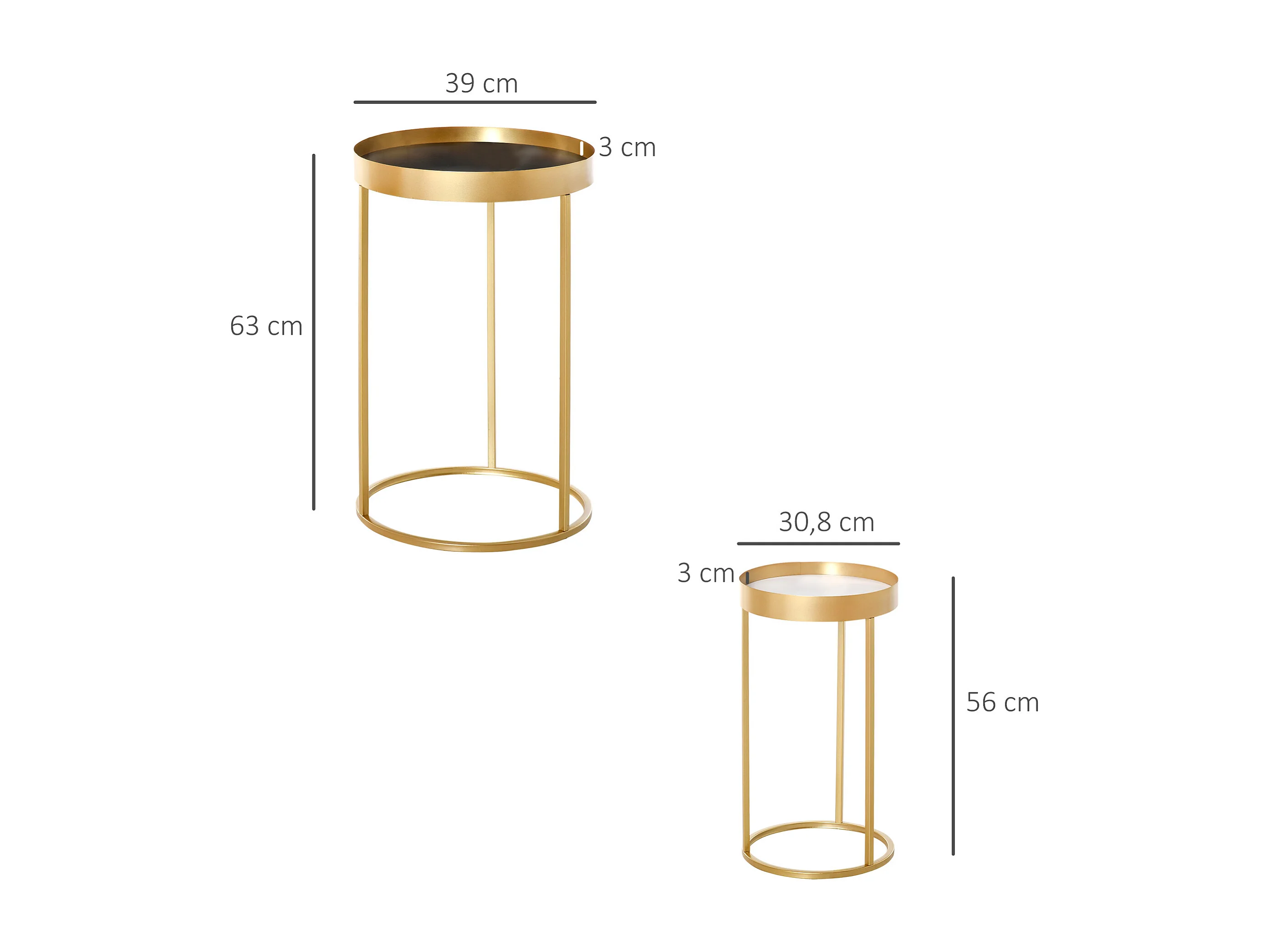 Tables gigognes lot de 2 tables basses rondes design style art déco Ø 39 et Ø 30 cm métal doré MDF blanc et noir