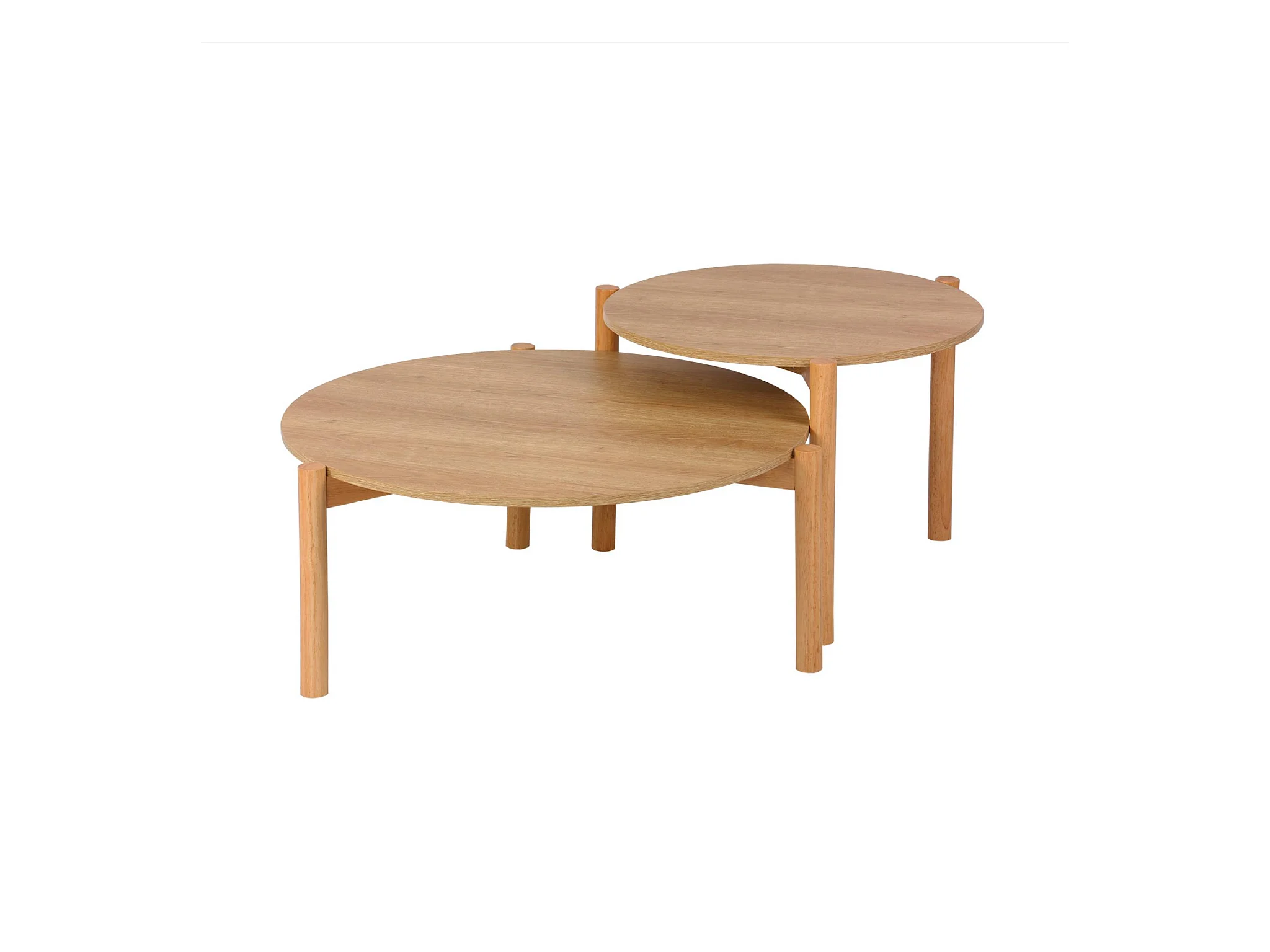 Lot de 2 tables basses gigognes, table d'appoint - D 66 x H 40 cm + D 40 x H 46 cm - MDF - Naturel