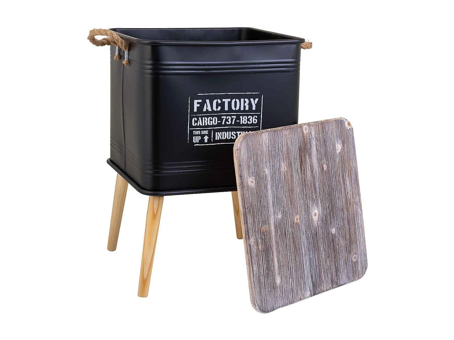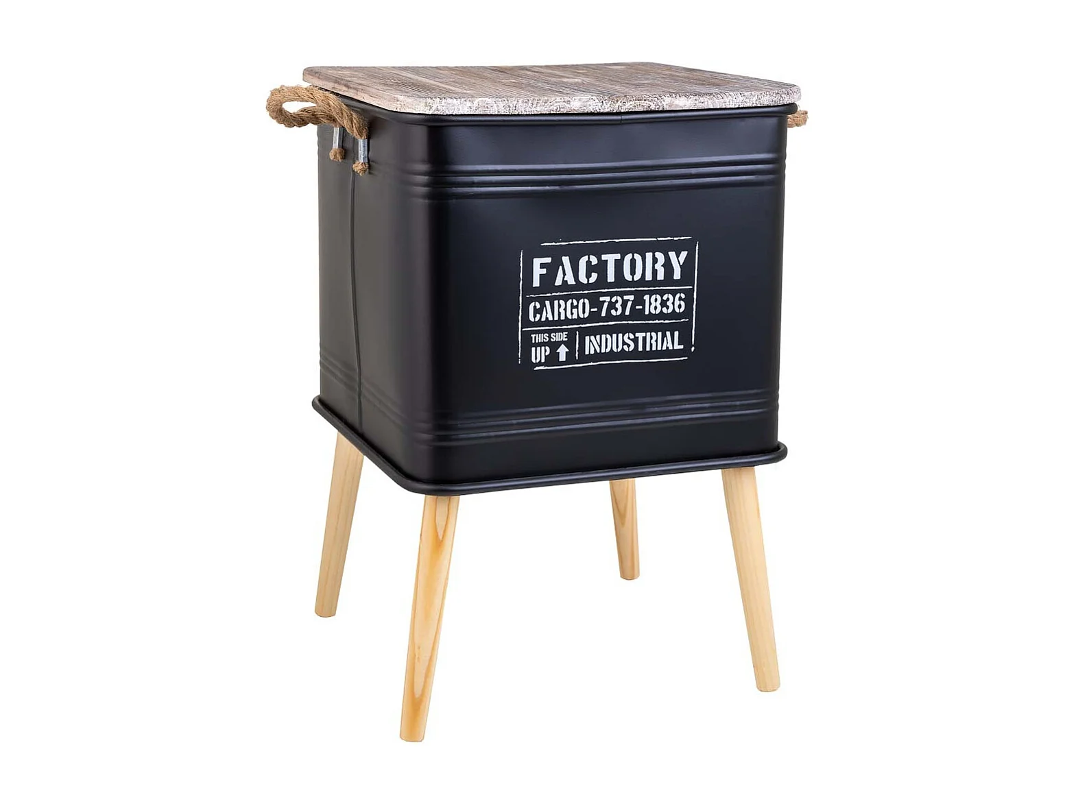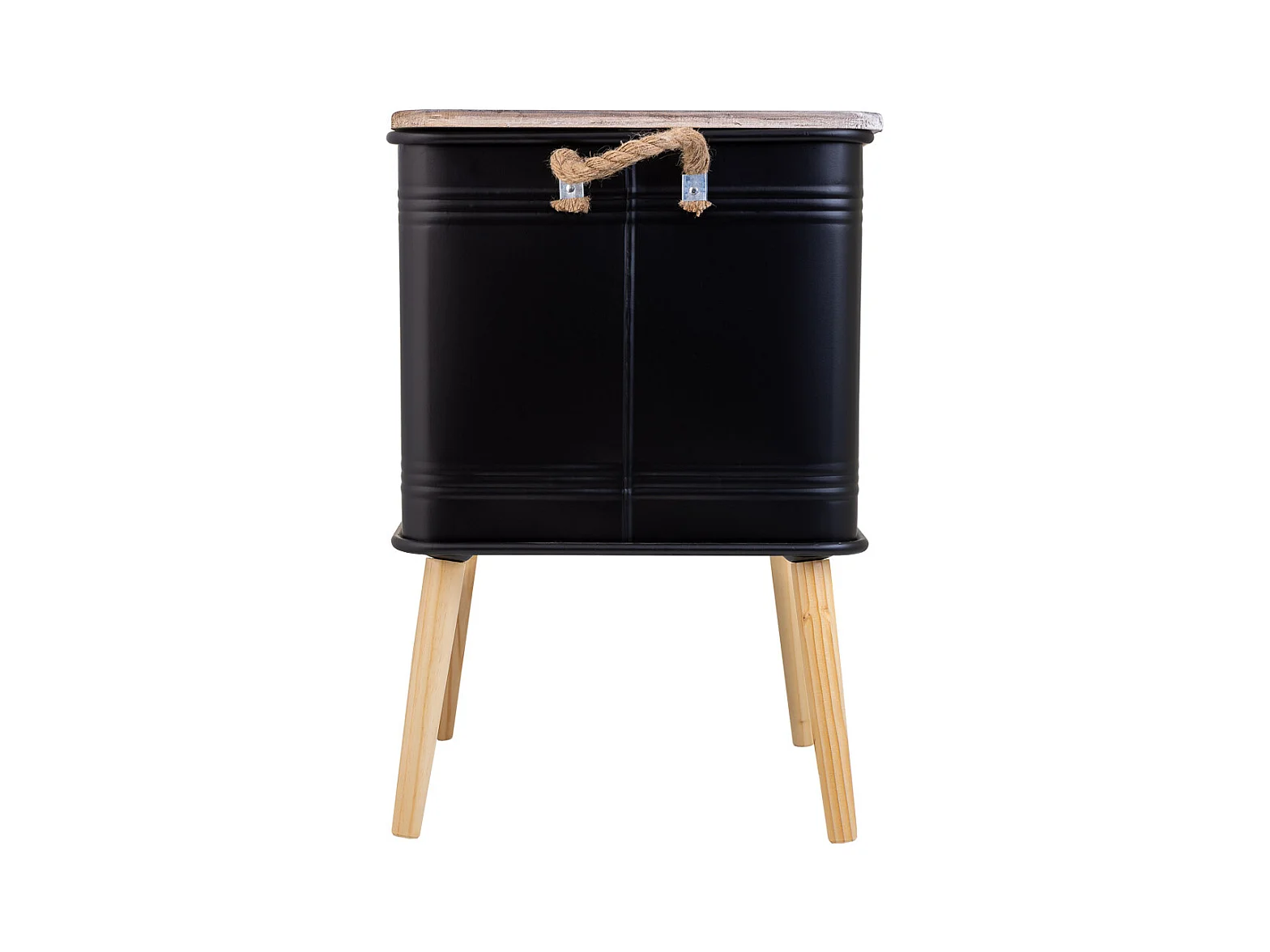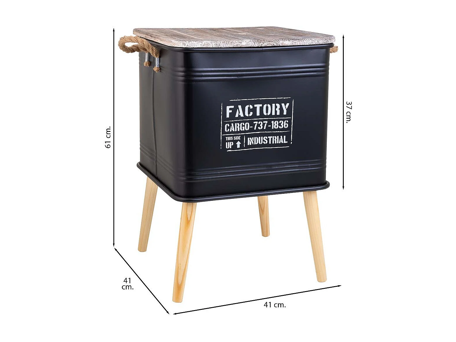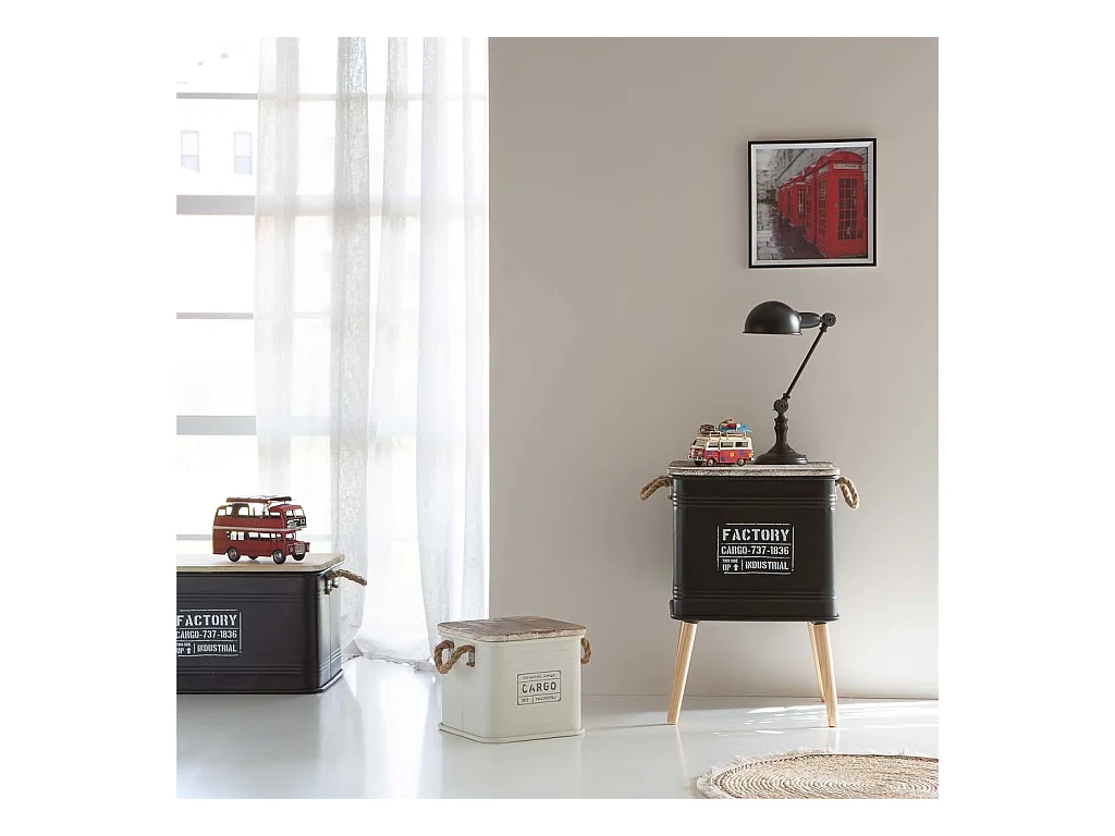 Table basse imprimée noire, métal, bois et corde, 41x41x37/61