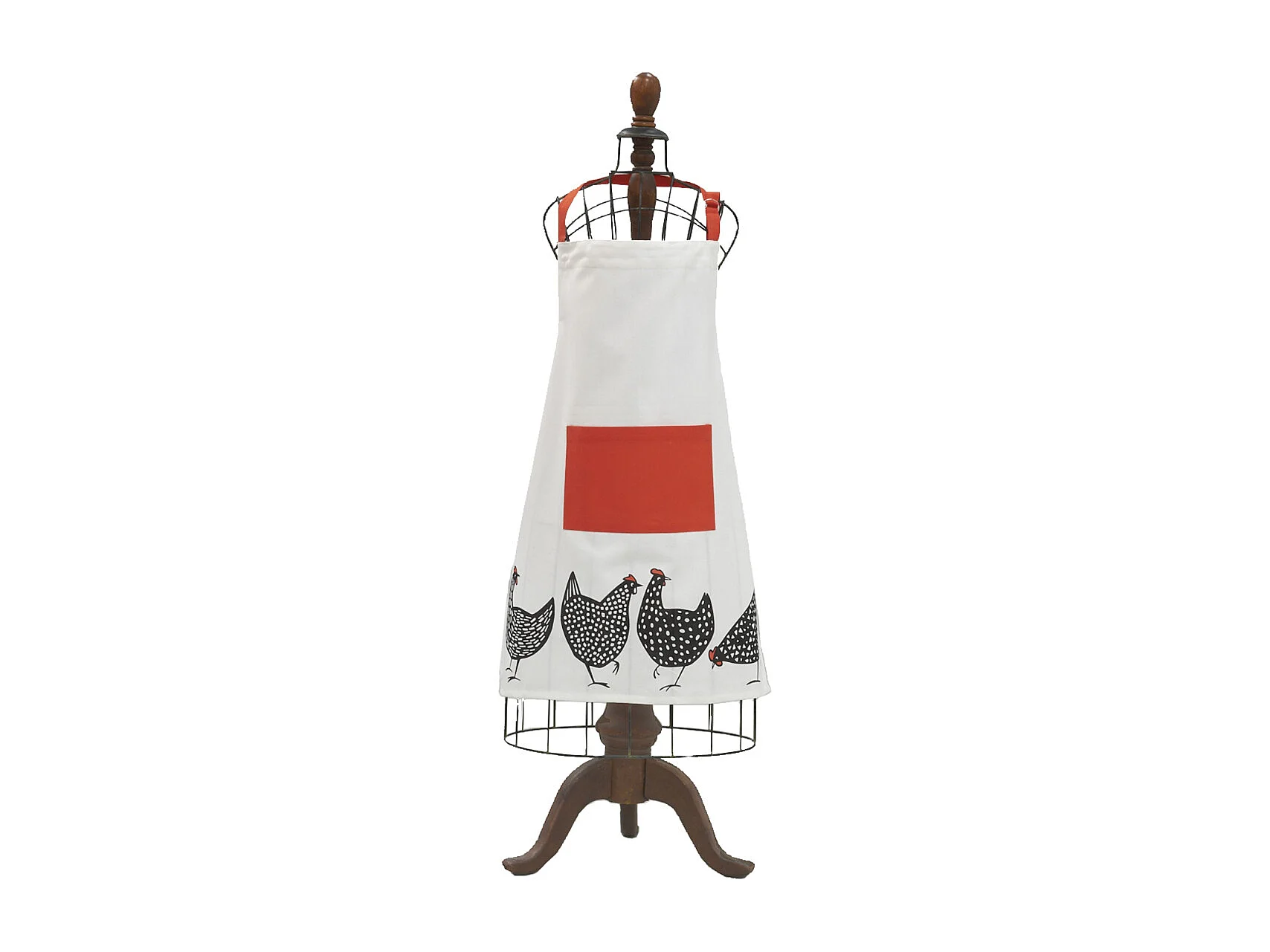 Tablier de cuisine en coton – Motif poule et poche rouge